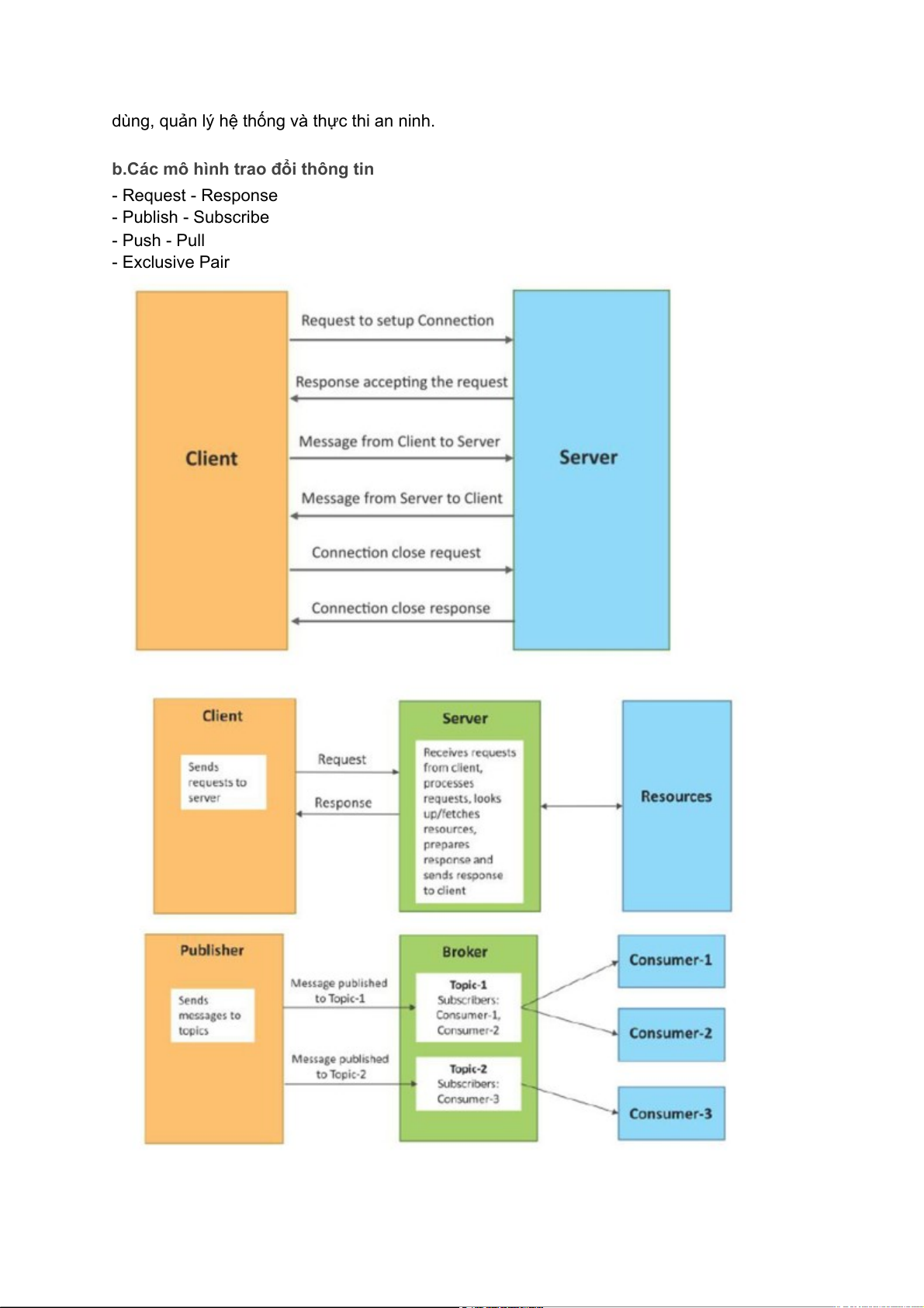 b.Các mô hình trao đổi thông tin - Request - Response - Publish - Subscribe - Push - Pull - Exclusive Pair