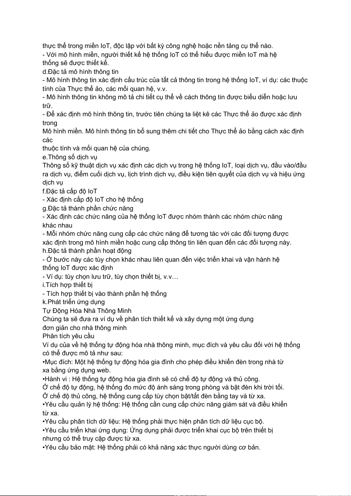 ra dịch vụ, điểm cuối dịch vụ, lịch trình dịch vụ, điều kiện tiên quyết của dịch vụ và hiệu ứng dịch vụ f.Đặc tả cấp độ IoT