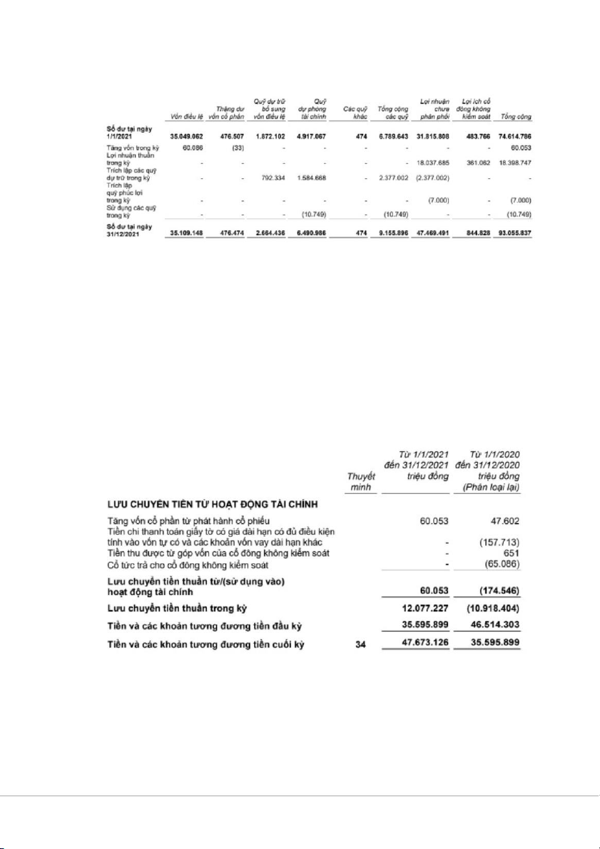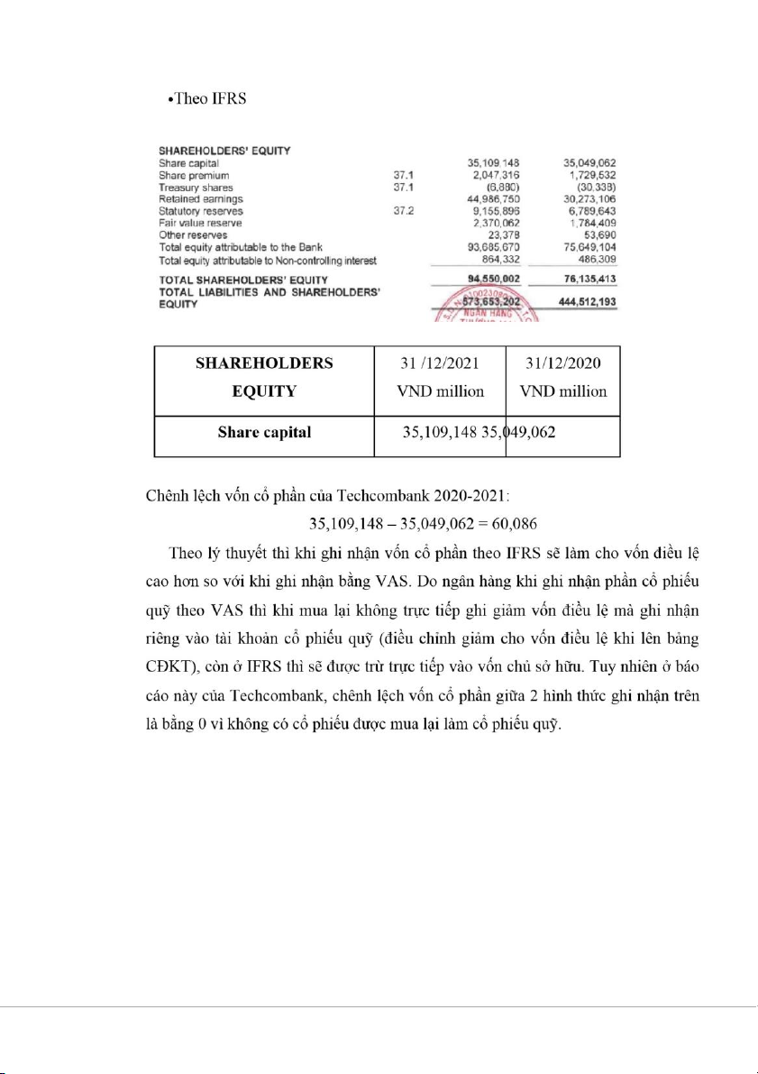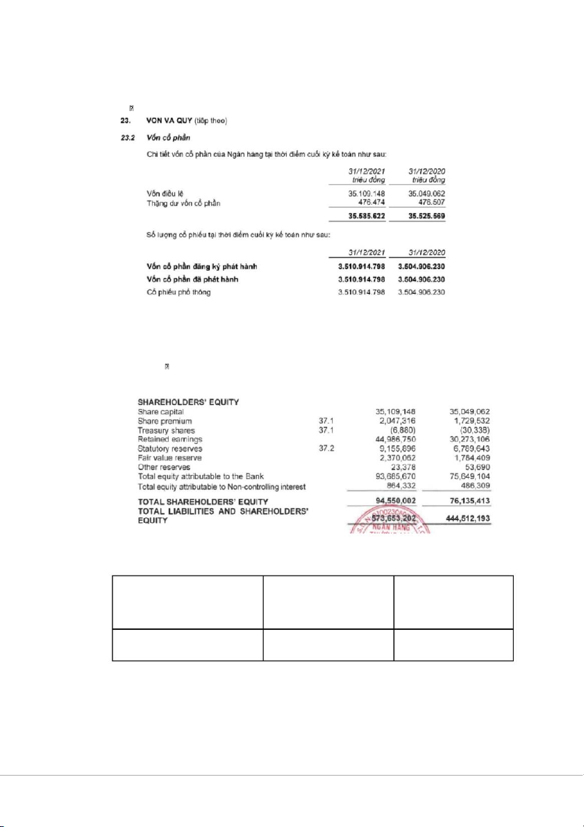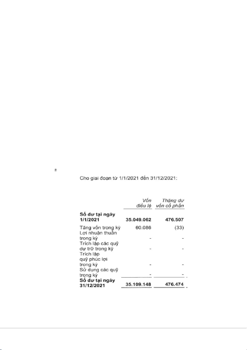 Thặng dư vốn cổ phần trong năm 2021 giảm 33 trđ so với năm 2020 do NH tăng vốn trong năm 2021. Theo IFRS 31 December 2021 31 December 2020 VND million VND million Share premium 2,047,316 1,729,532