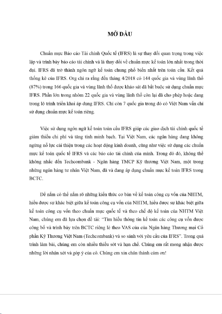 chuẩn mực IFRS và VAS của Ngân hàng Techcombank.........................................16