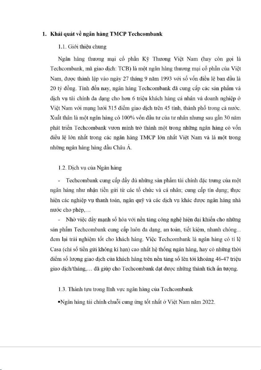 1.3. Thành tựu trong lĩnh vực ngân hàng của Techcombank..................................10