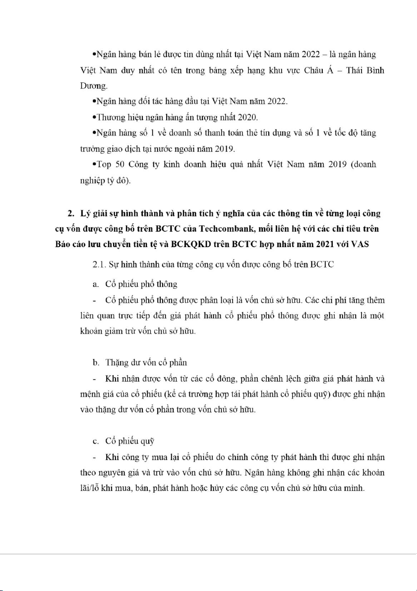 vốn được công bố trên BCTC của Techcombank, mối liên hệ với các chỉ tiêu trên Báo