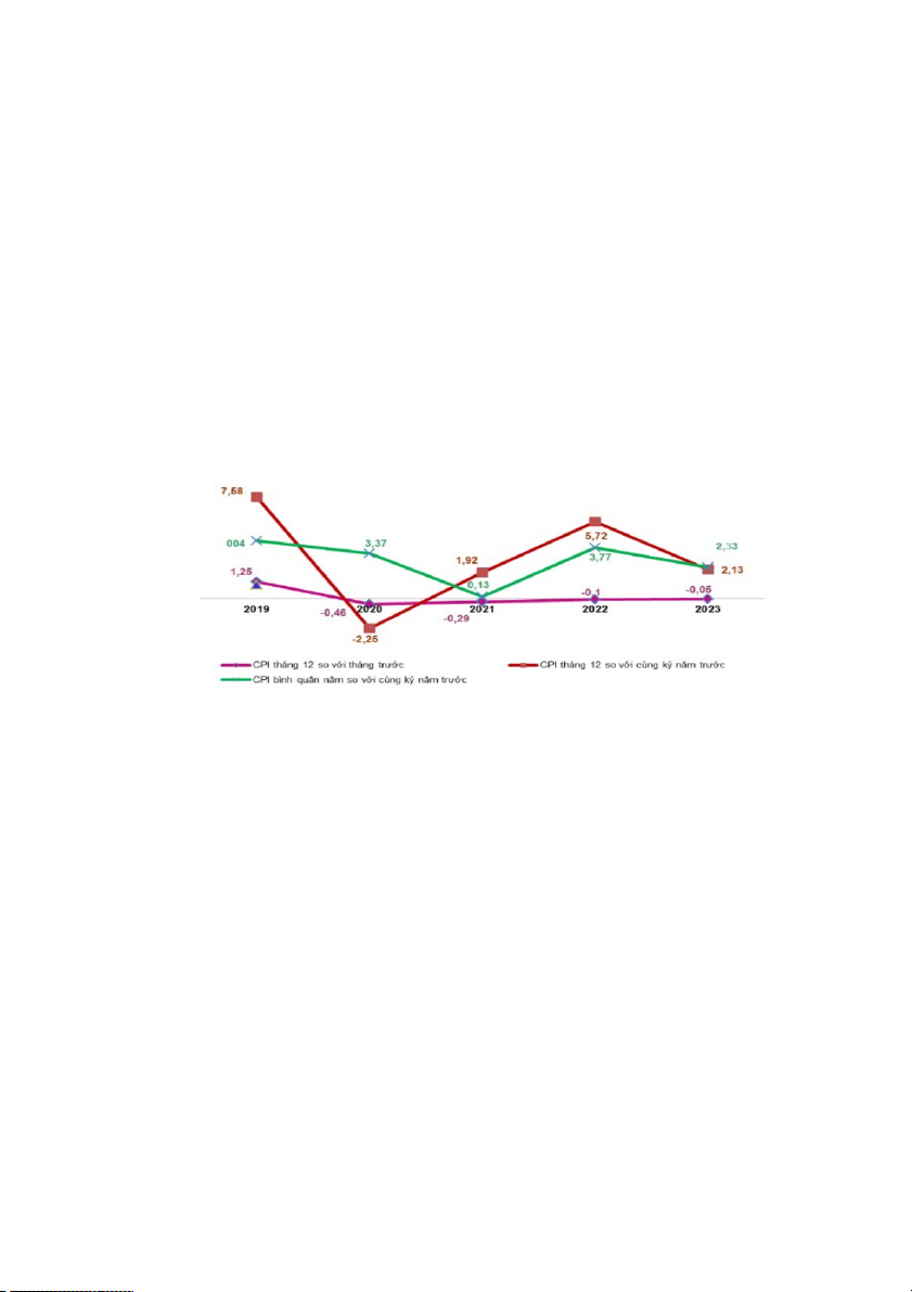 Hình 3:Tốc độ tăng/giảm CPI tháng 12 và năm 2023 các năm 2019-