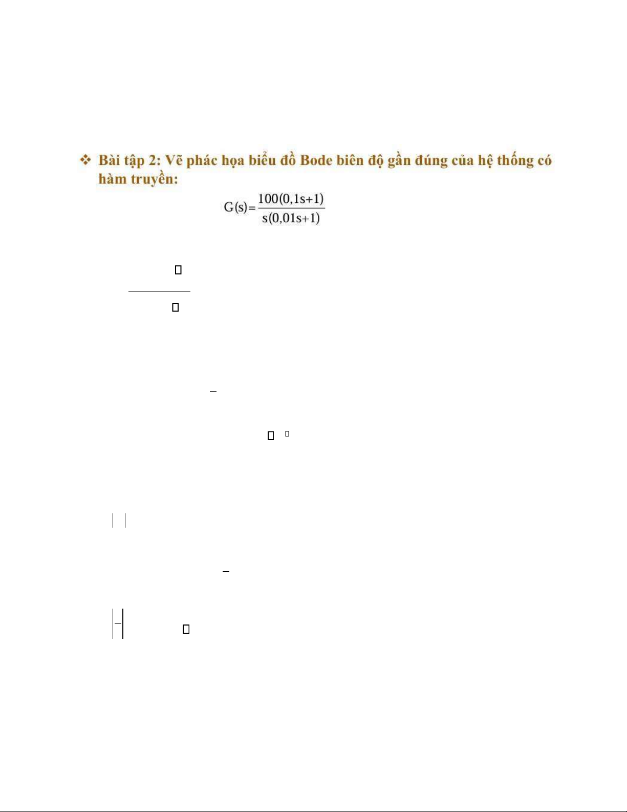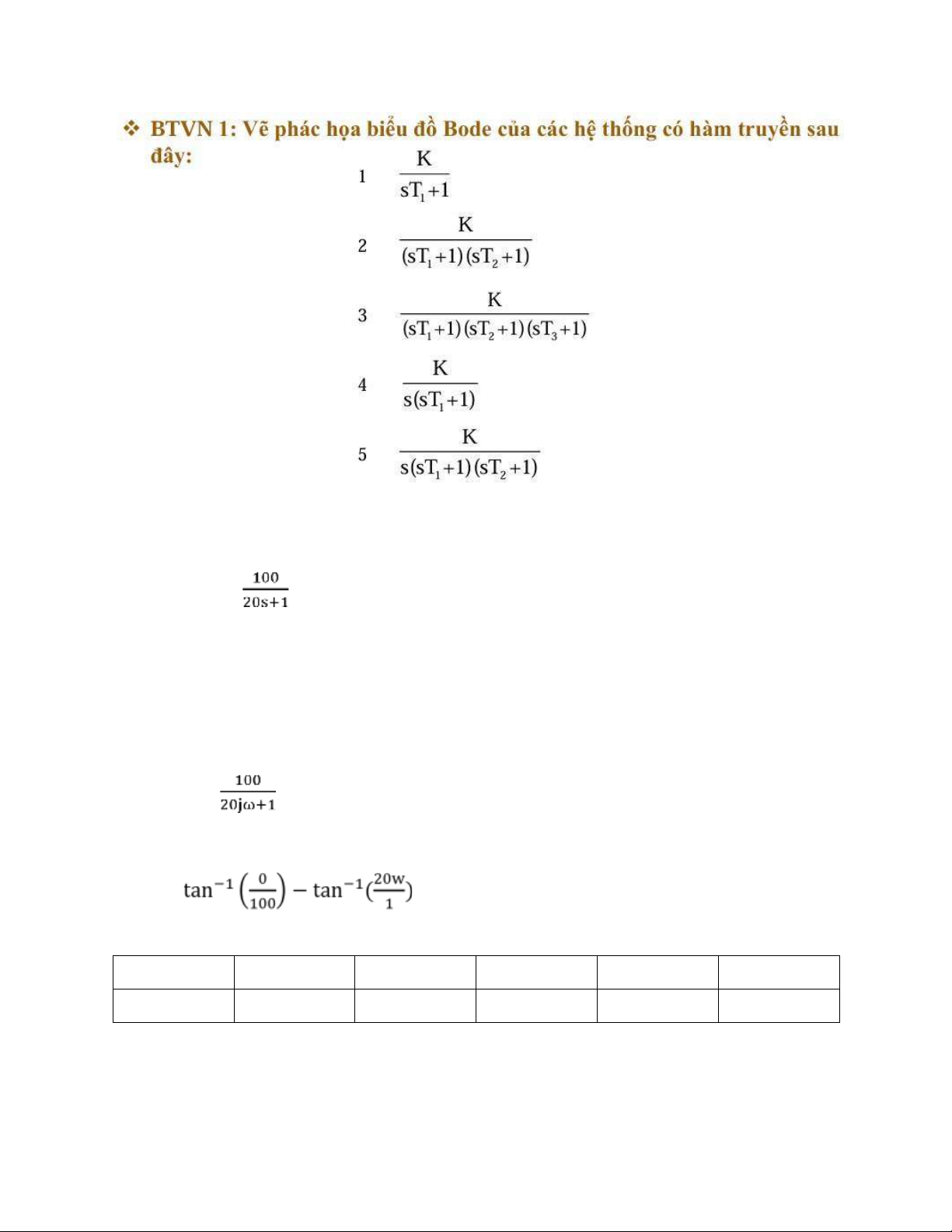 Bài tập 6: Vẽ phác họa biểu bồ Bode của các hệ thống có các hàm truyền dưới đây