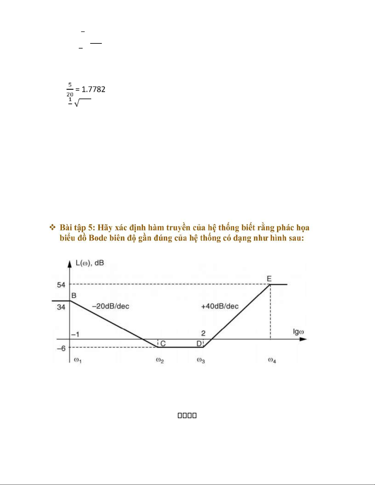 Độ dốc đoạn DE là +40dB/dec, mà từ điểm D đến điểm E biên độ của biểu đồ Bode