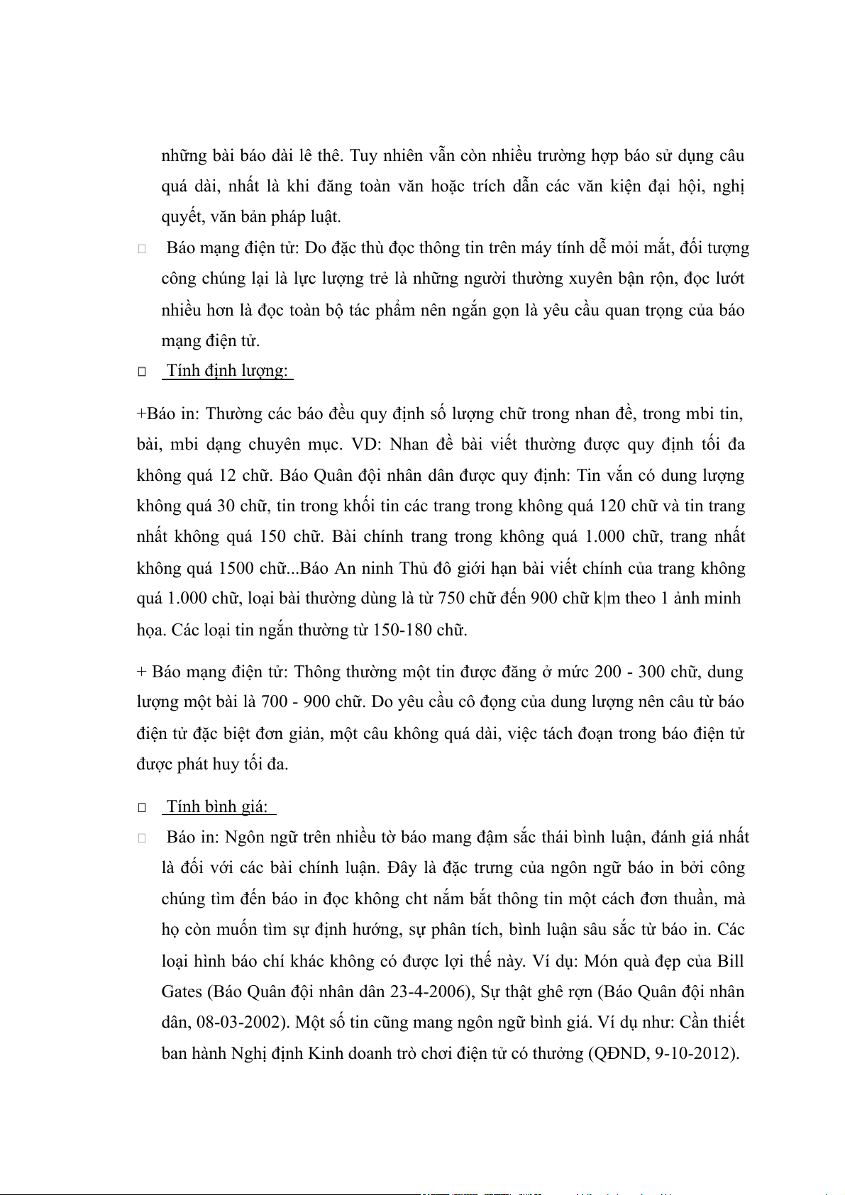 lượng một bài là 700 - 900 chữ. Do yêu cầu cô đọng của dung lượng nên câu từ báo