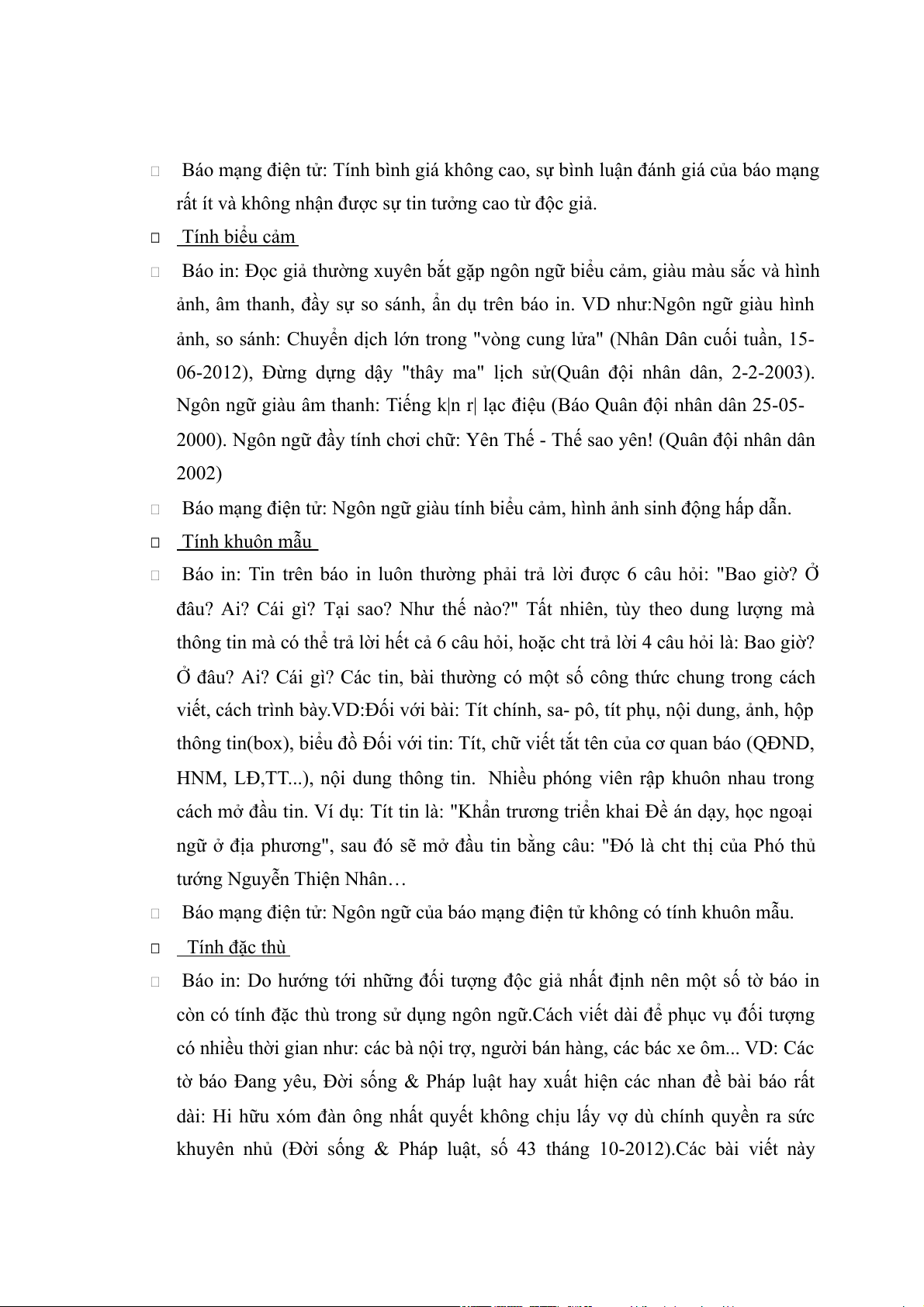 đó những đặc trưng riêng như chính xác, nhanh nhạy và hấp dẫn. Ngôn ngữ báo chí