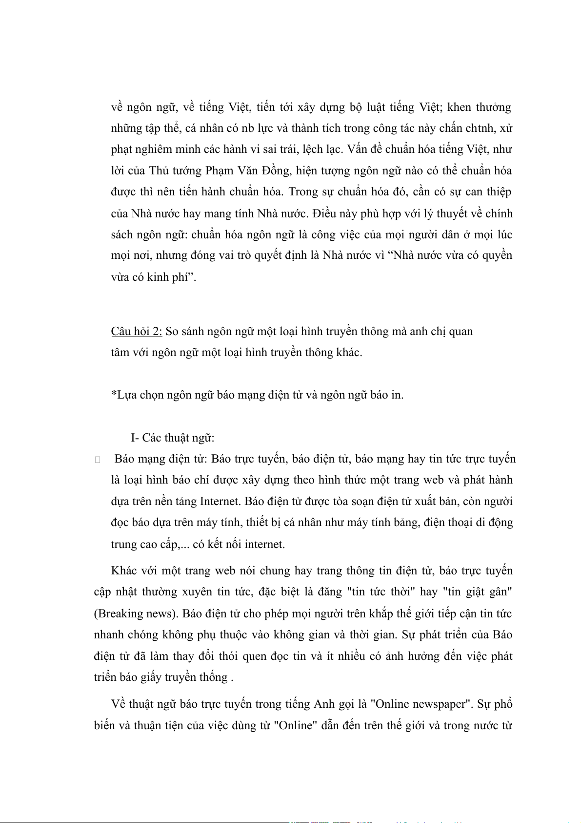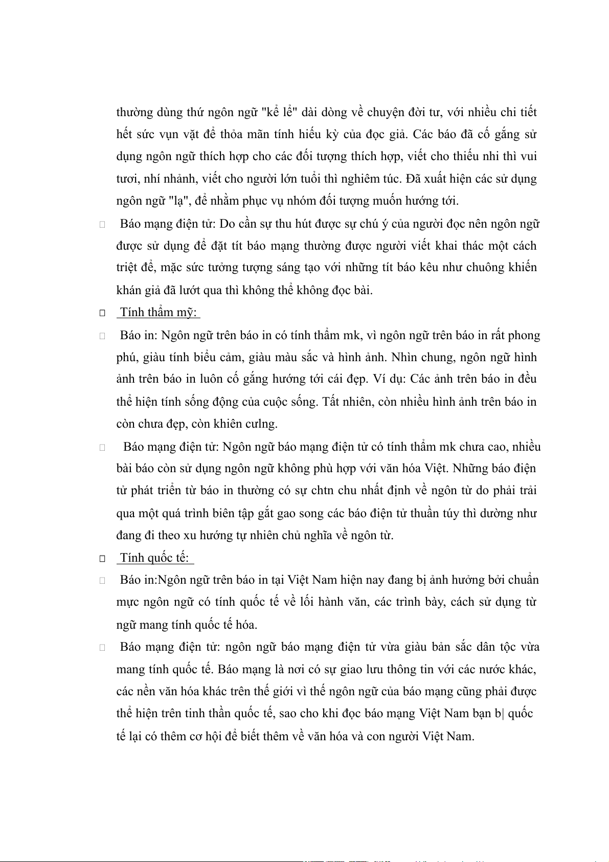 Báo mạng điện tử: Ngôn ngữ báo mạng điện tử có tính thẩm mk chưa cao, nhiều