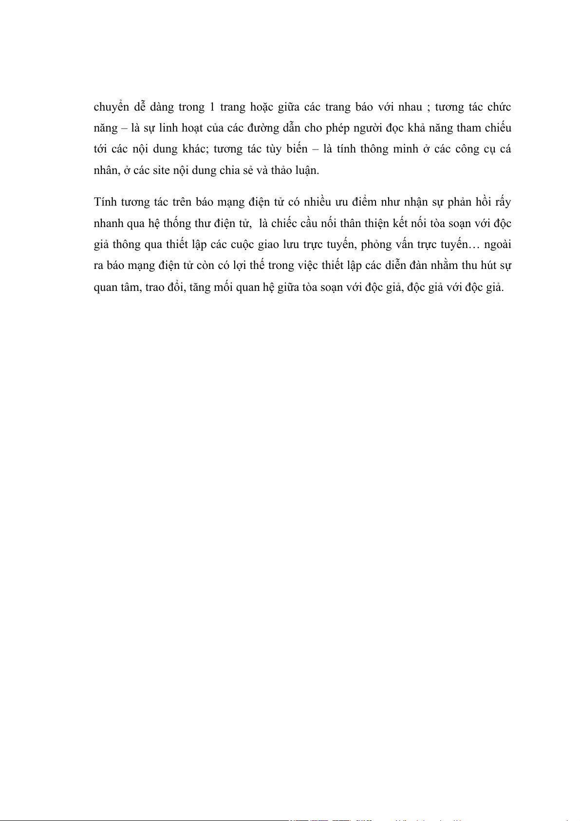 Tính tương tác trên báo mạng điện tử có nhiều ưu điểm như nhận sự phản hồi rấy