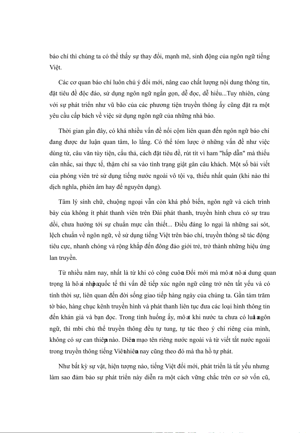 báo chí thì chúng ta có thể thấy sự thay đổi, mạnh mẽ, sinh động của ngôn ngữ tiếng Việt.