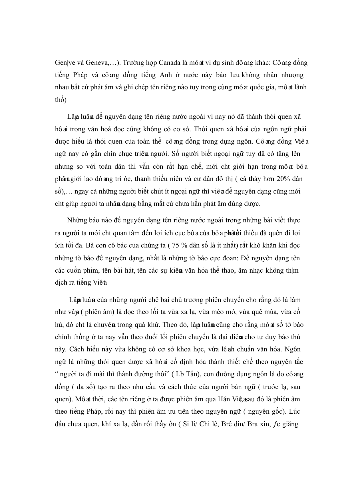 nổi lên khuynh hướng cứ để nguyên dạng tên riêng nước ngoài trong tiếng Viê a