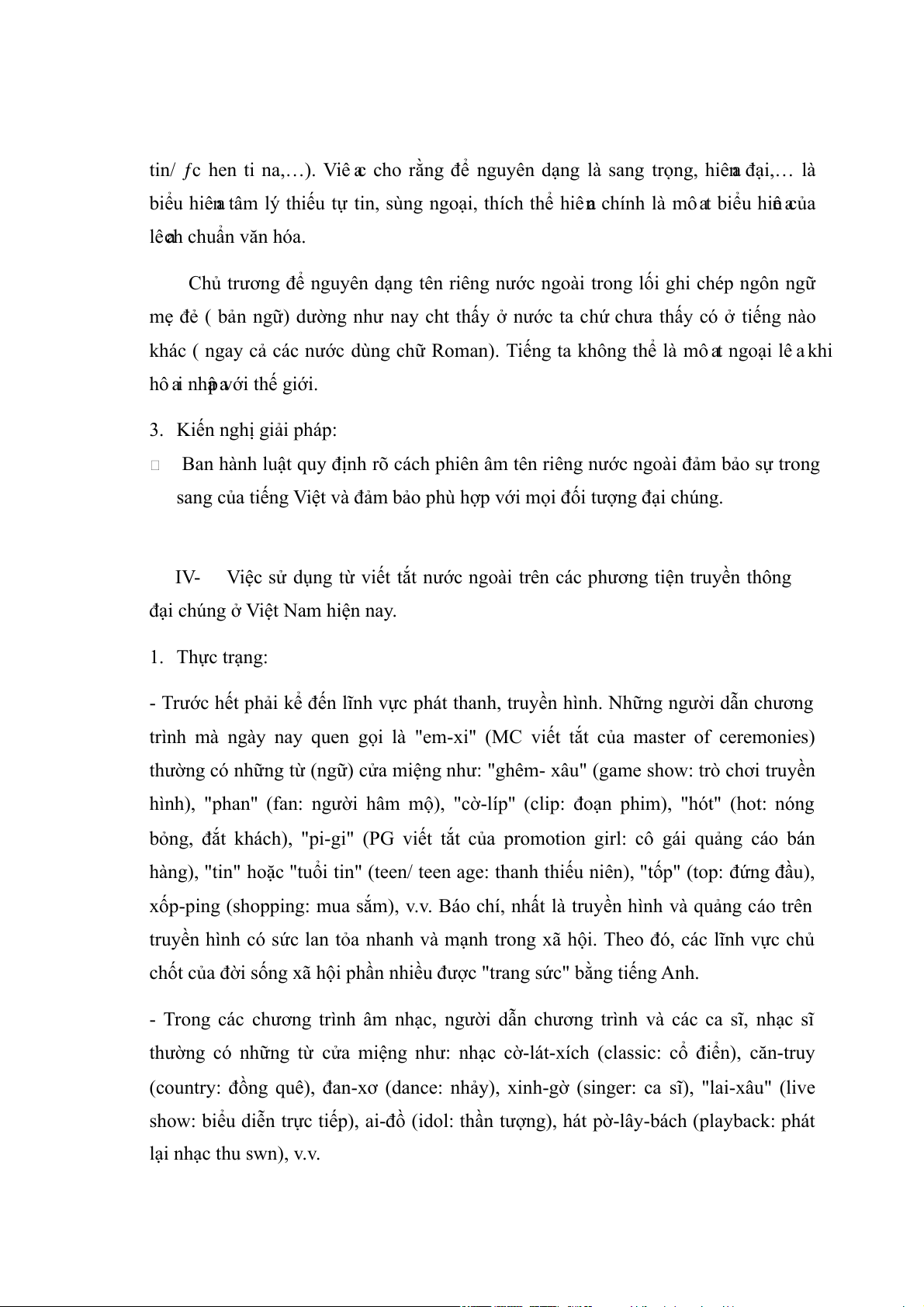 III- Việc sử dụng tên riêng nước ngoài trên các phương tiện truyền thông