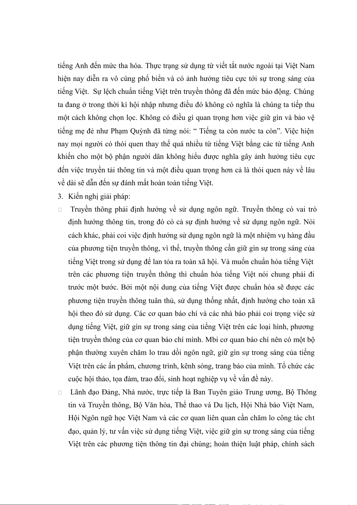 ngoài trên các phương tiện thông tin đại chúng ở Việt Nam hiện nay? Những kiến nghị? I. Đặt vấn đề: