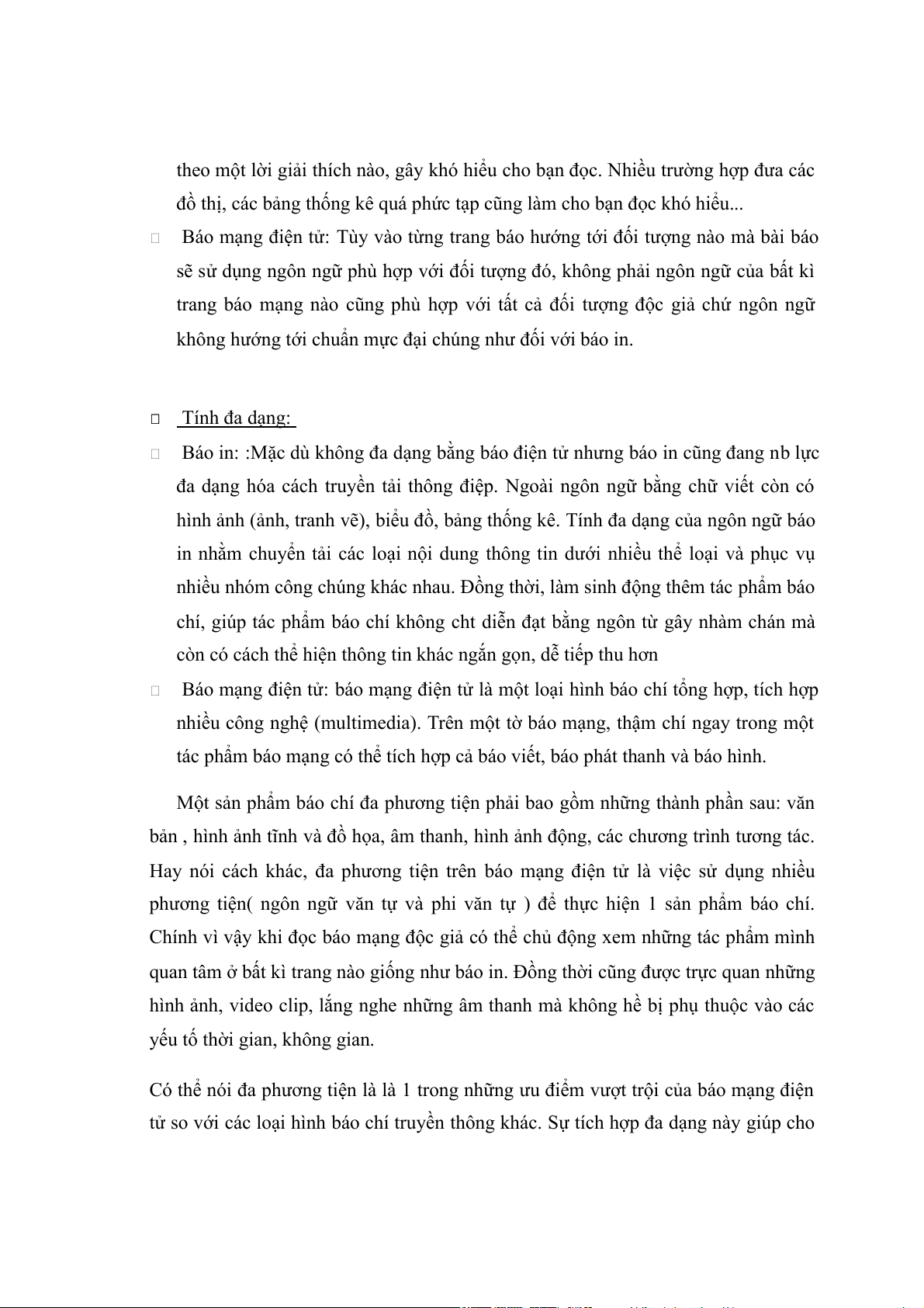 Báo mạng điện tử: Ngôn ngữ của báo mạng điện tử không có tính khuôn mẫu. Tính đặc thù