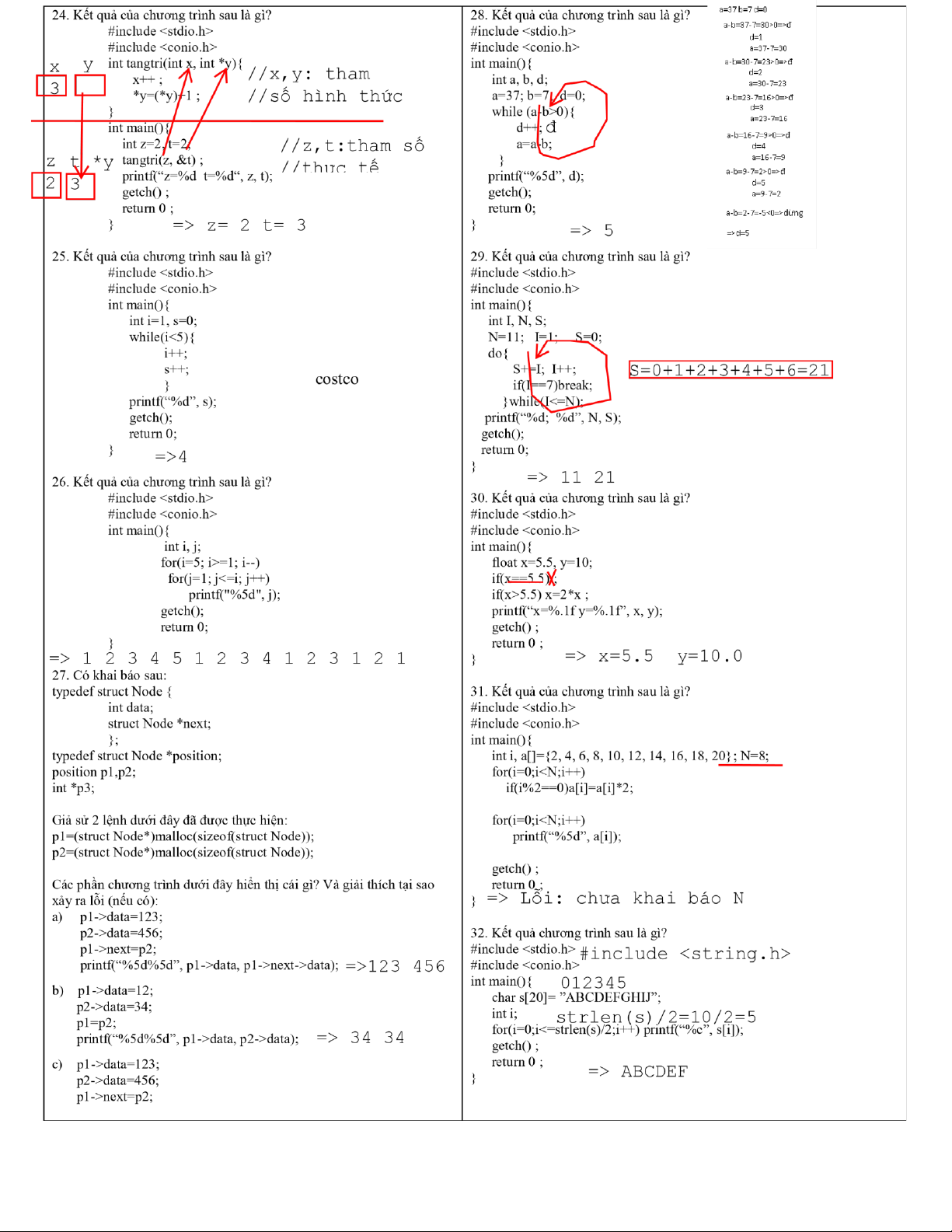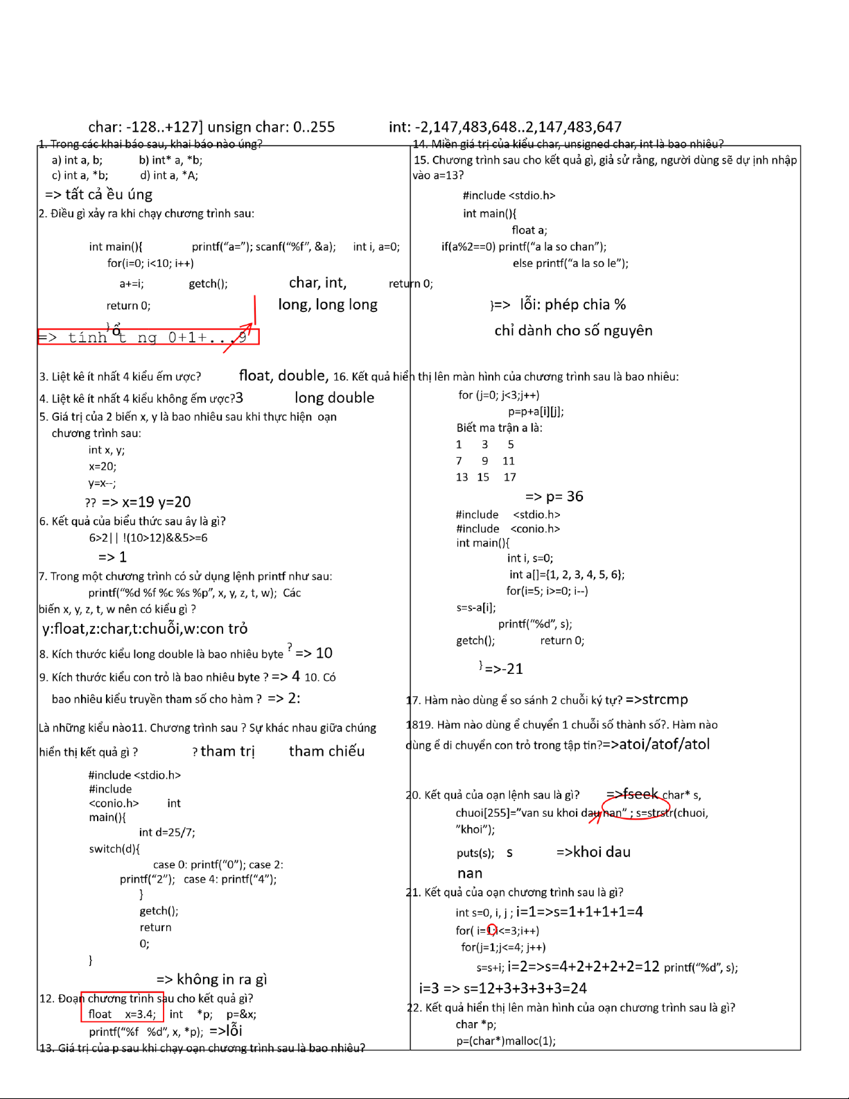 *p=66; printf(“%c”, p);* i<2; i++) 3 =>B return 0; =>10 20