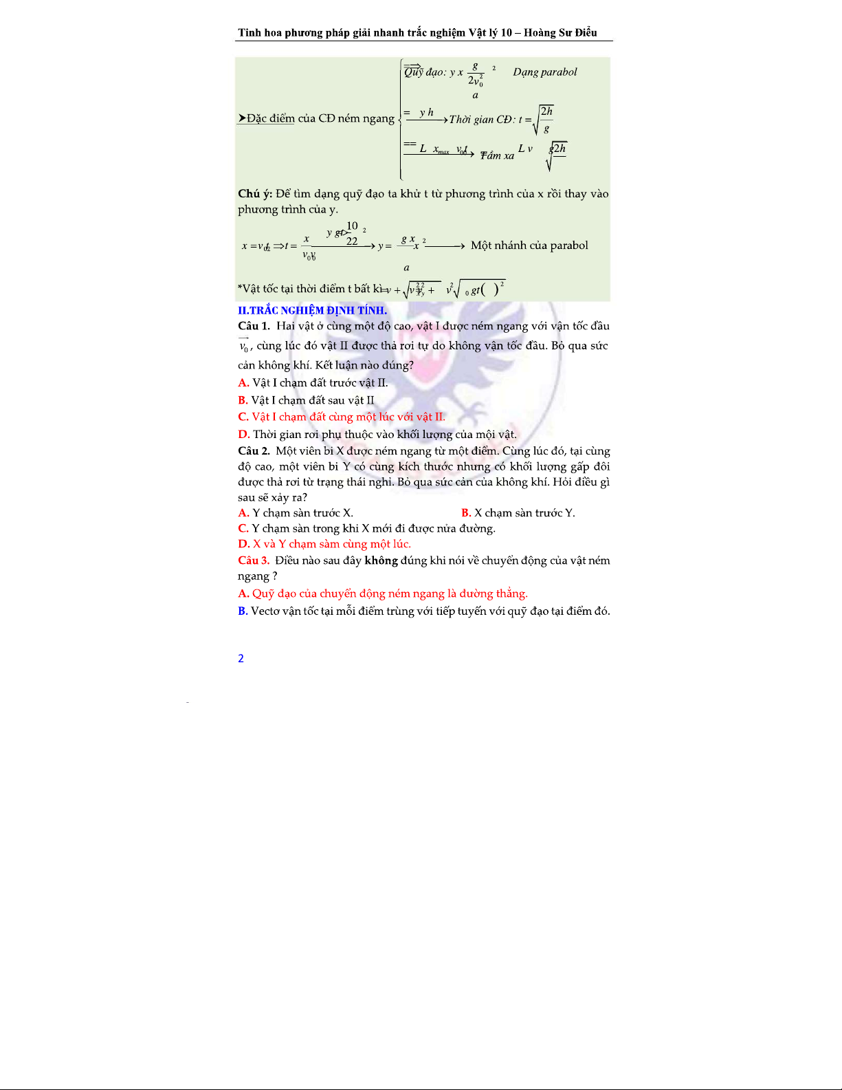 Bài tập lý thuyết về chuyển động ném ngang Vật lý 10