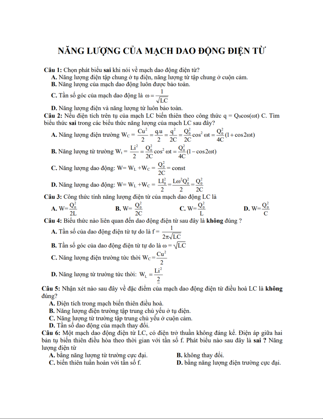 Bài tập mạch dao động điện từ (Lý thuyết và bài tập thực hành) môn Mạch điện tử | Trường Đại học Bách Khoa Hà Nội