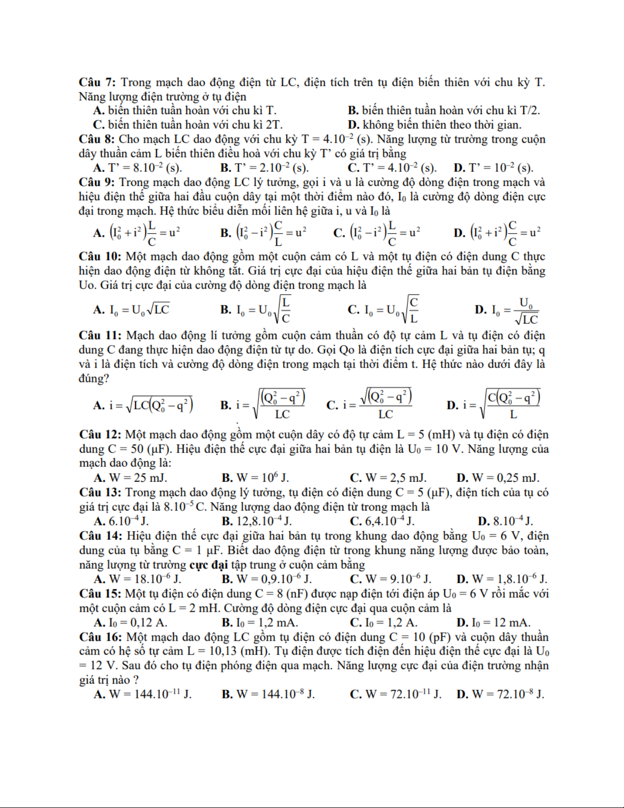 Bài tập mạch dao động điện từ (Lý thuyết và bài tập thực hành) môn Mạch điện tử. Tài liệu được sưu tầm gồm 4 trang, giúp các bạn ôn luyện và phục vụ cho việc học tập, đạt kết quả tốt. Mời các bạn đón xem!