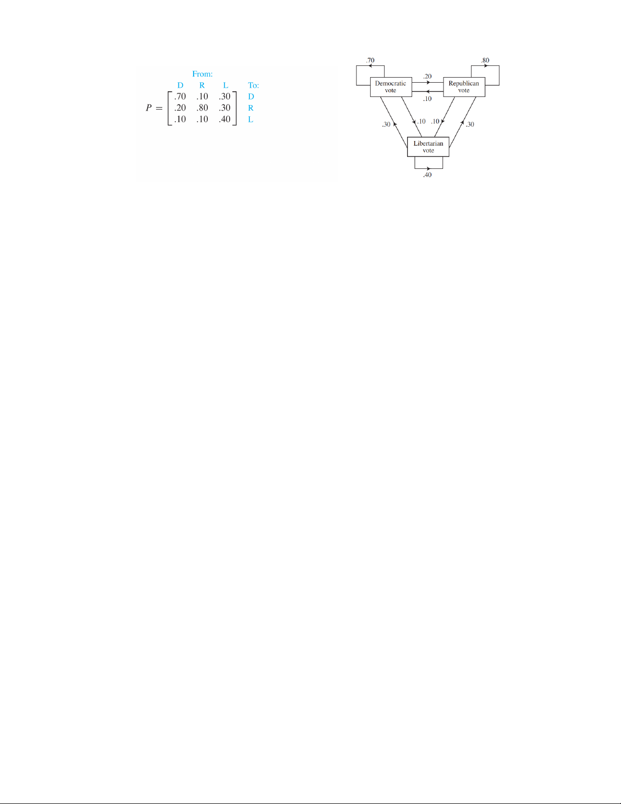 trong số 400 sẽ chuyển từ R sang D và 30% trong số 50 sẽ chuyển từ L sang D. Do đó tổng số phiếu bầu D sẽ là
