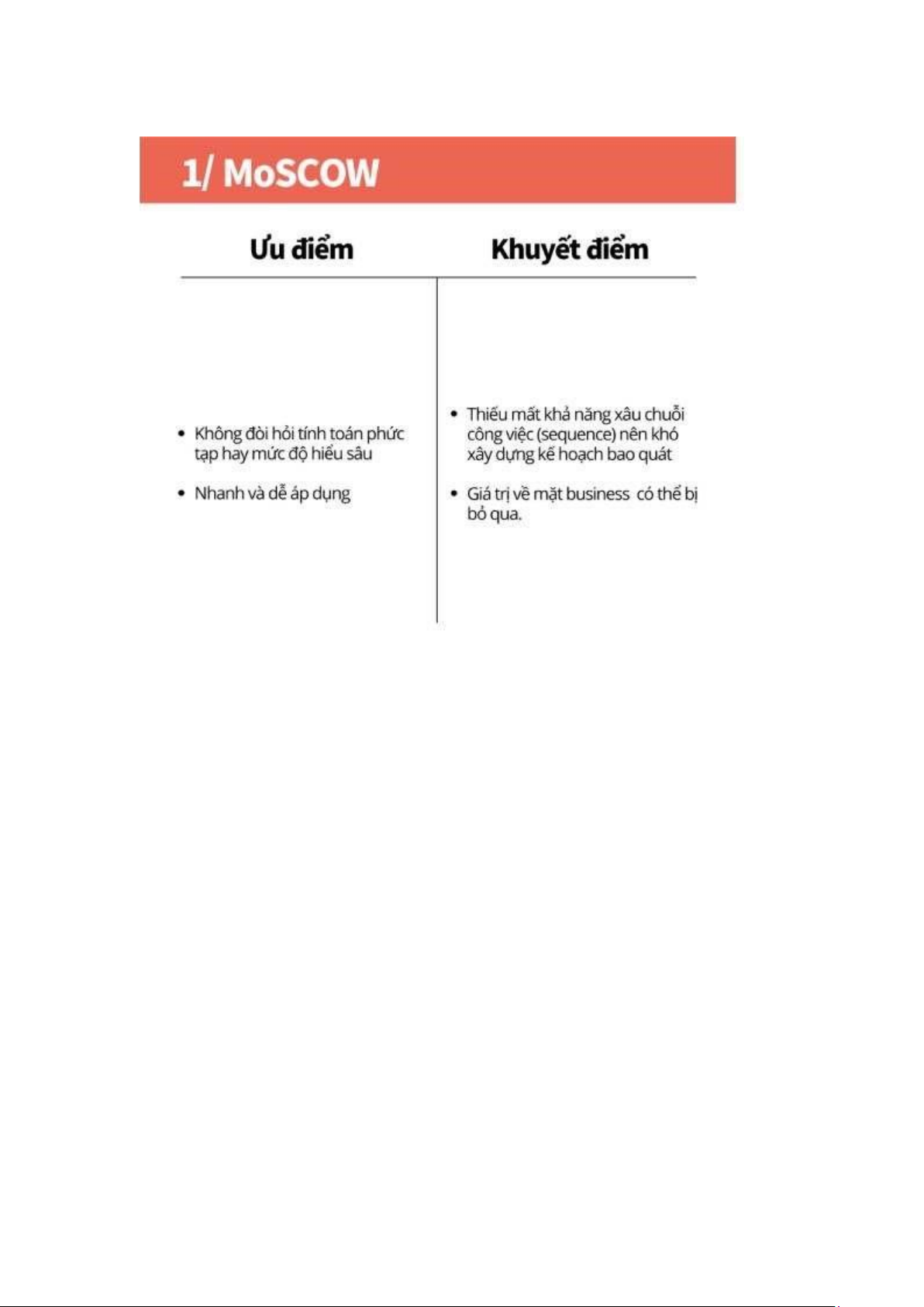 MoSCoW là phương pháp đơn giản tuy nhiên không phải lúc nào nó cũng phát huy hiệu