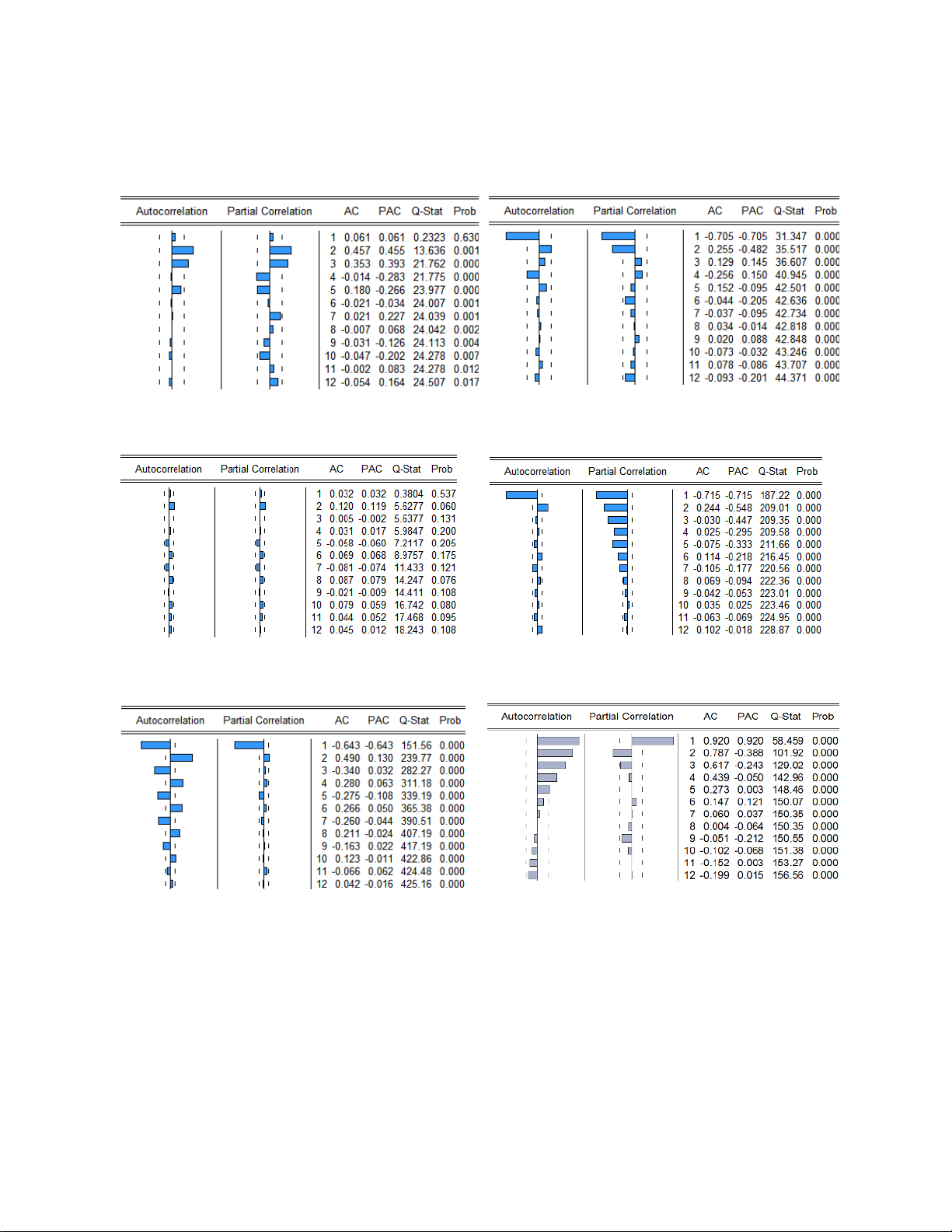Nhận xét về định dạng bậc ARMA qua các lược đồ của các dừng sau : Lược đồ 4.1 Lược đồ 4.2 Lược đồ 4.3 Lược đồ 4.4 Lược đồ 4.5 Lược đồ 4.6