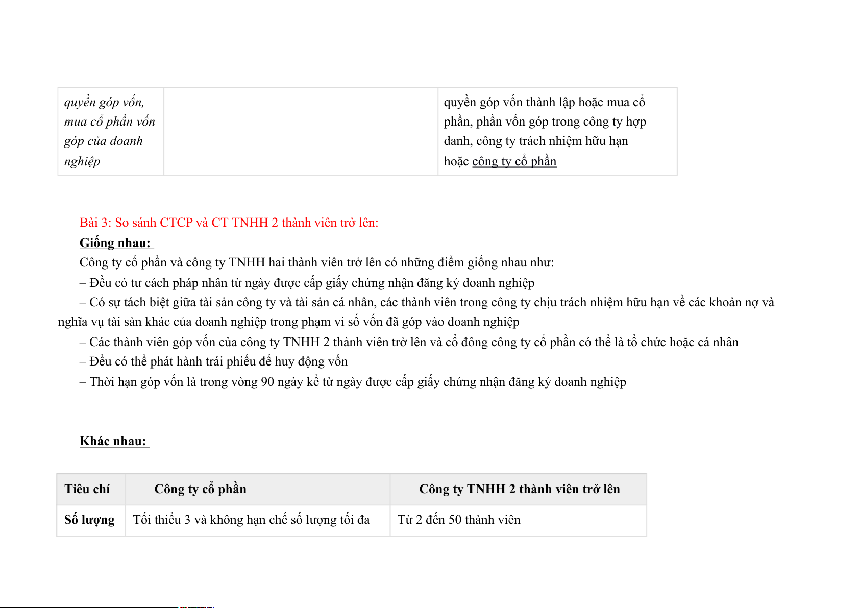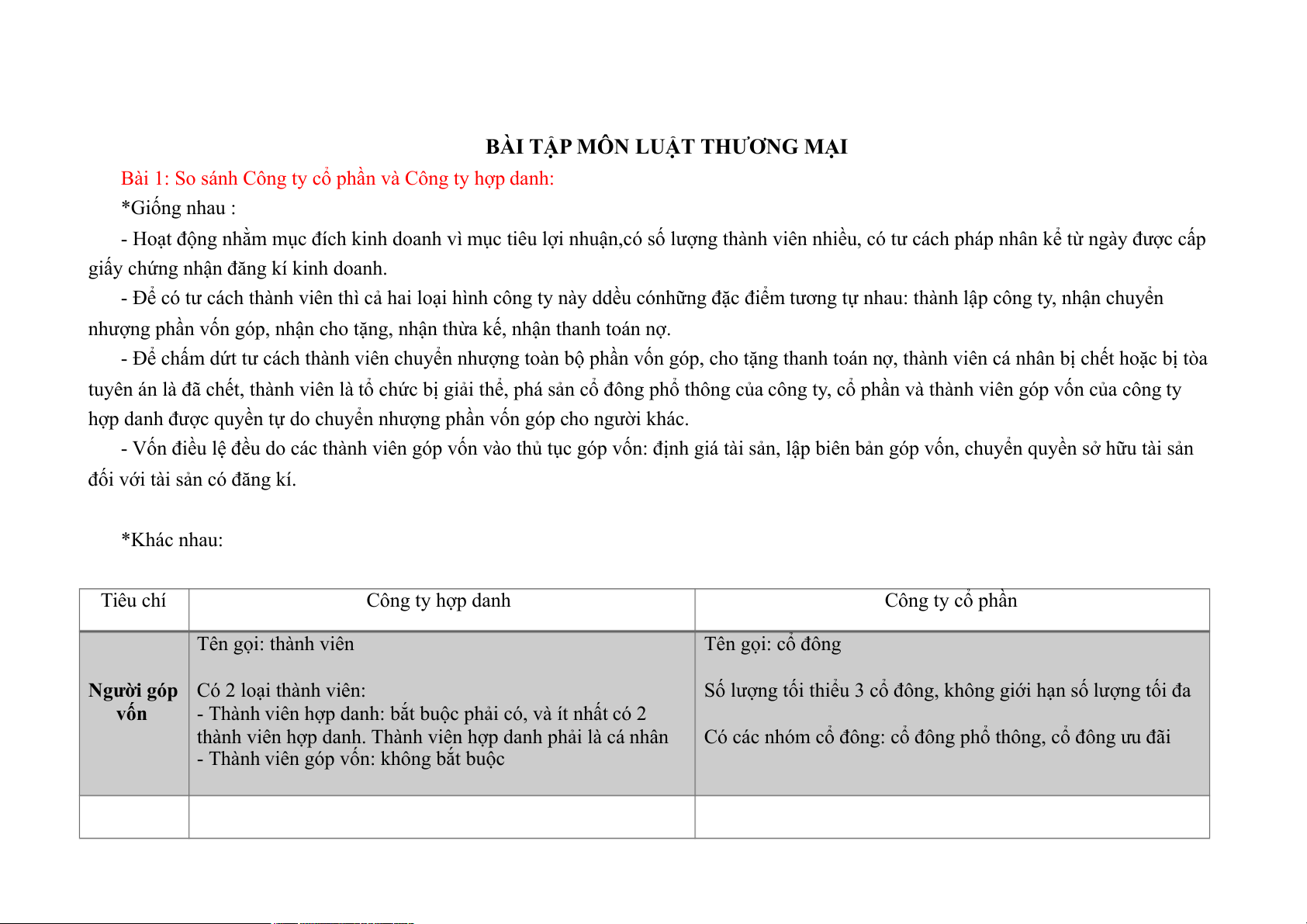 Bài 1: So sánh Công ty cổ phần và Công ty hợp danh: *Giống nhau :