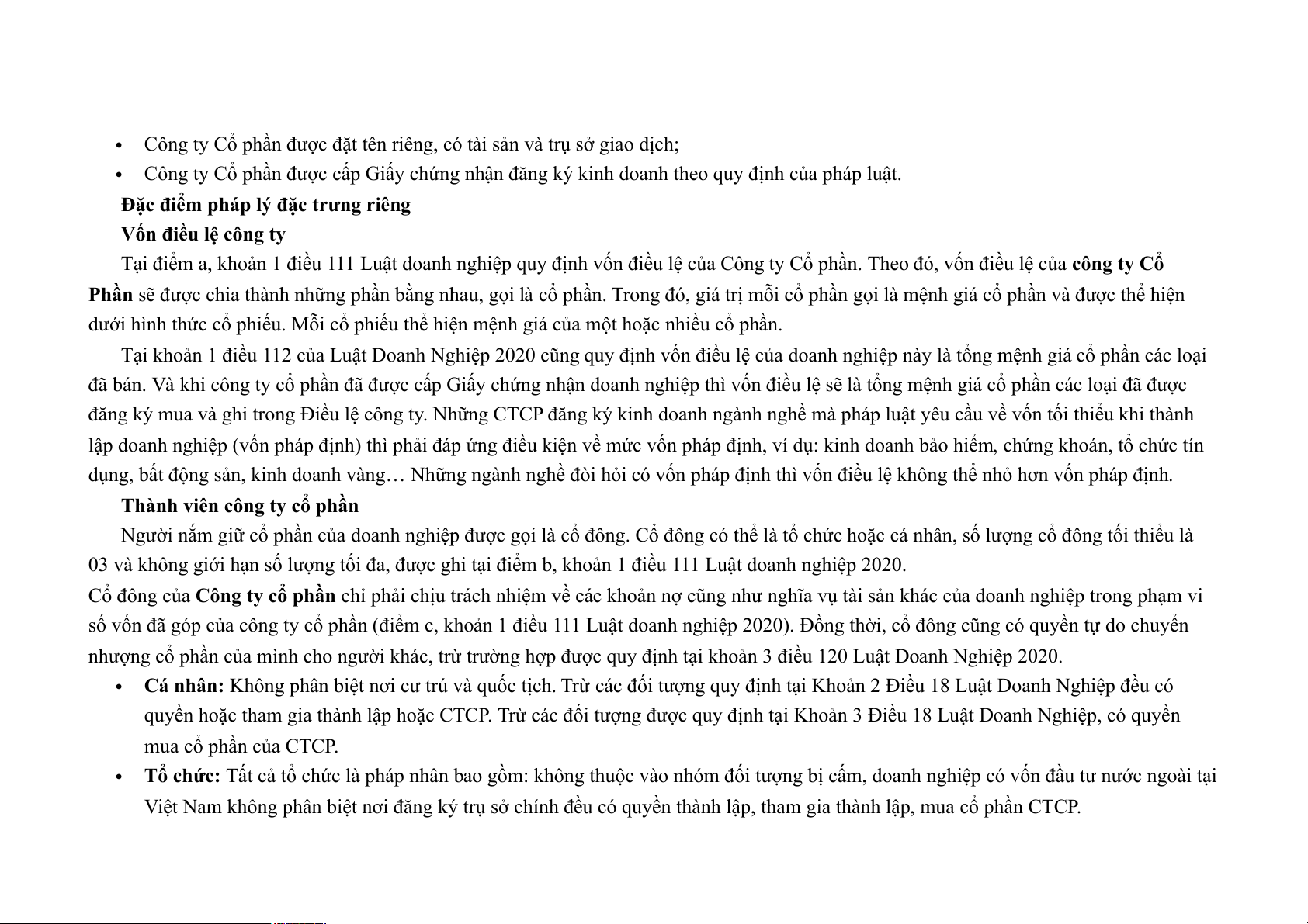 Đặc điểm pháp lý đặc trưng riêng Vốn điều lệ công ty