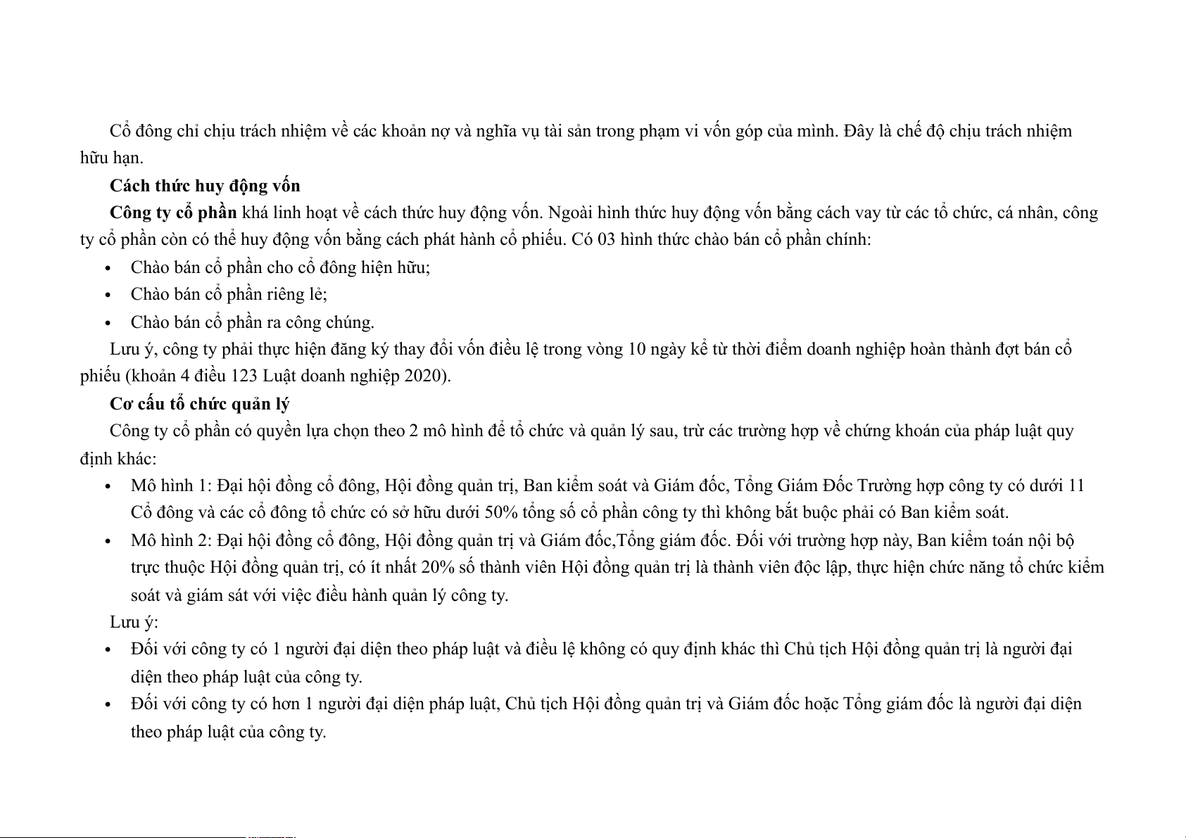 Công ty cổ phần khá linh hoạt về cách thức huy động vốn. Ngoài hình thức huy động vốn bằng cách vay từ các tổ chức, cá nhân, công