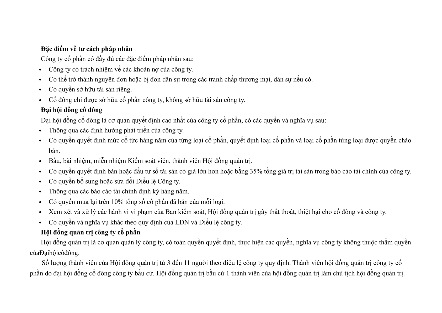 phần do đại hội đồng cổ đông công ty bầu cử. Hội đồng quản trị bầu cử 1 thành viên của hội đồng quản trị làm chủ tịch hội đồng quản trị. ĐỀ CƯƠNG ÔN TẬP