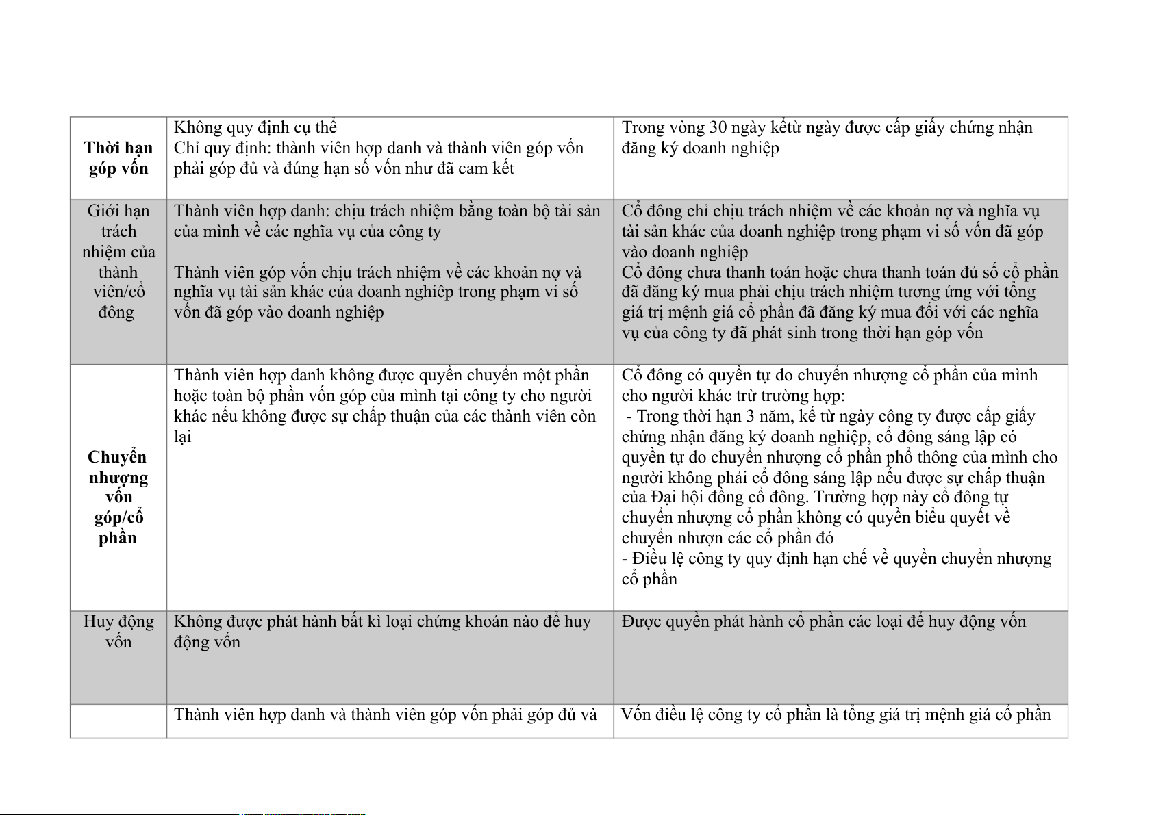 Thành viên hợp danh và thành viên góp vốn phải góp đủ và Vốn điều lệ công ty cổ phần là tổng giá trị mệnh giá cổ phần