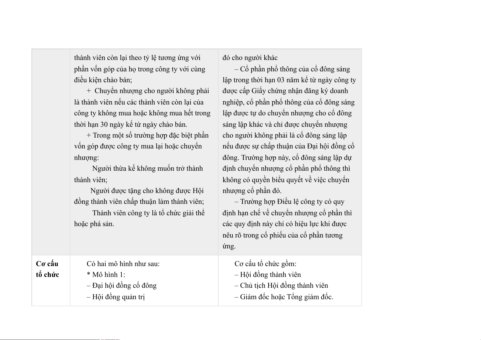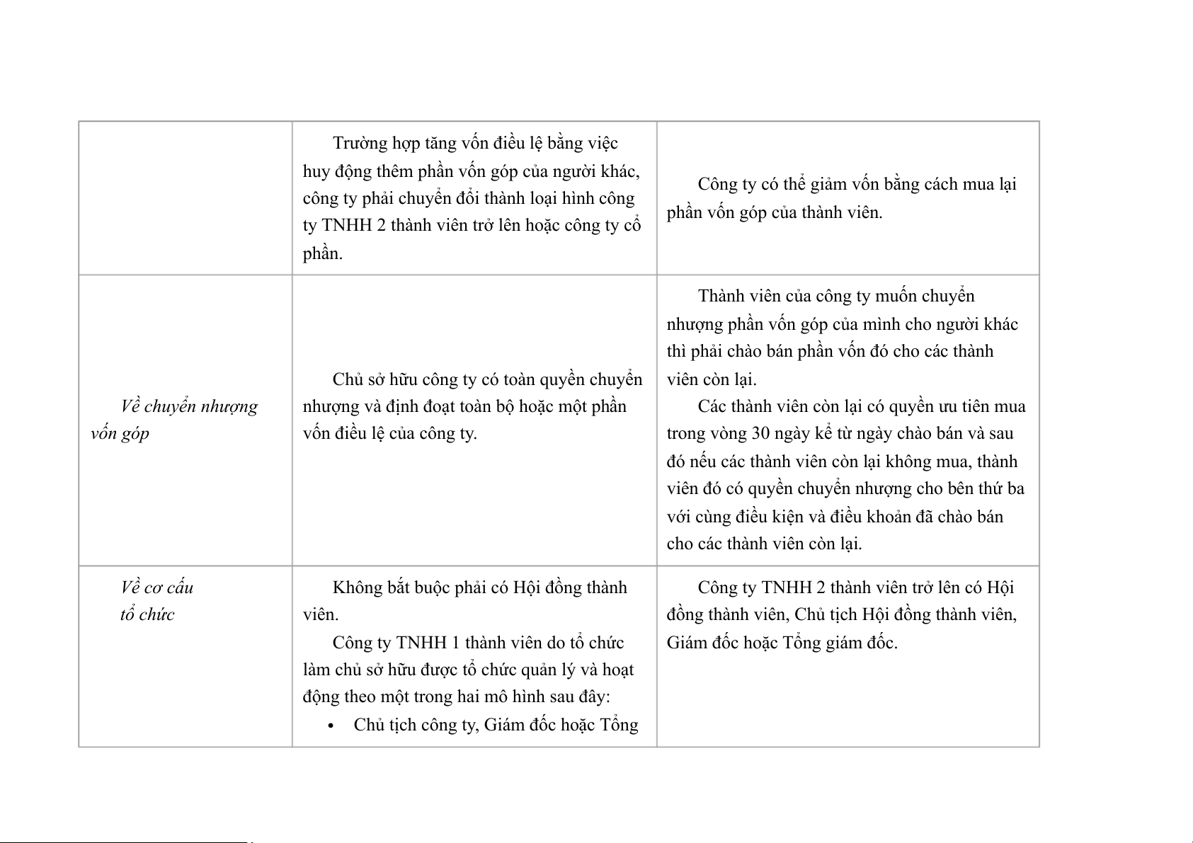 - Quy chế pháp lí thành viên :Có thể chuyển nhượng một phần hoặc toàn bộ vốn góp của mình cho người khác theo quy định tại điều