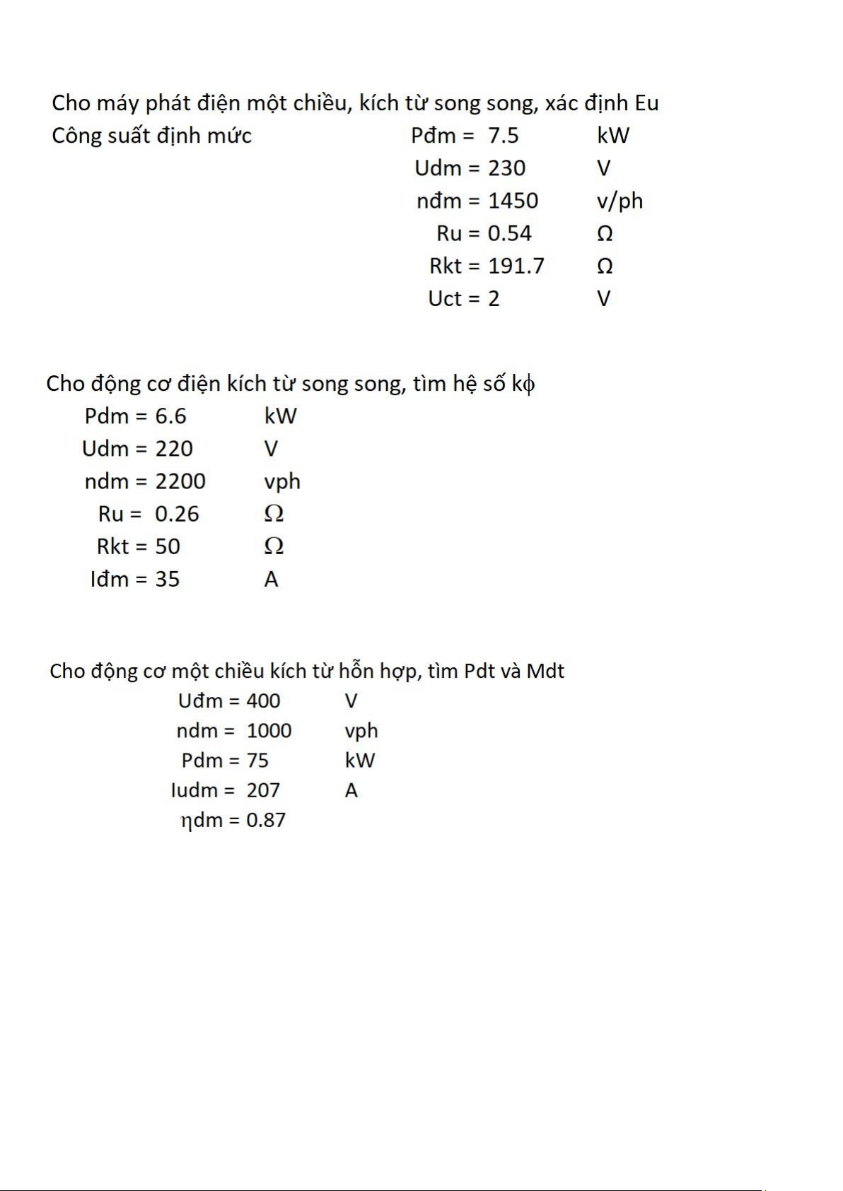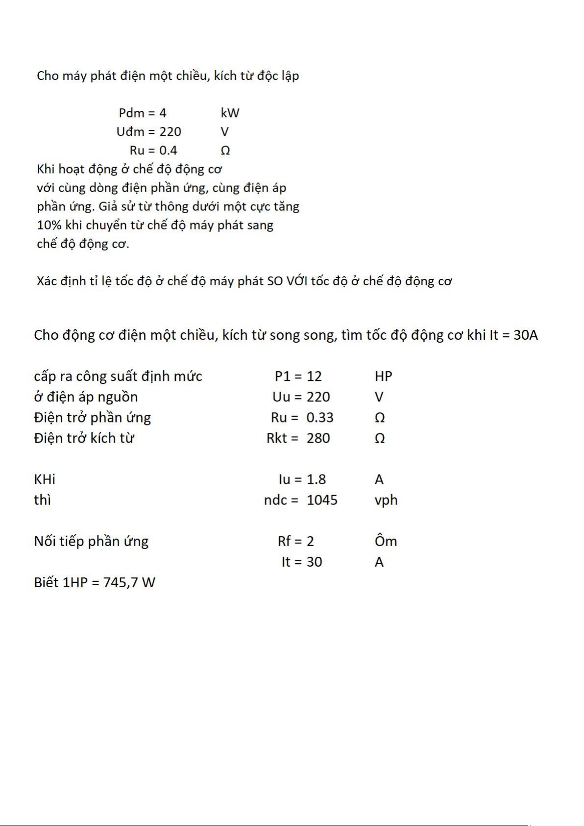 BÀI TẬP MÁY ĐIỆN MỘT CHIỀU Câu 1:. Câu 2: Câu 3 Câu 4: Câu 5: Câu 6: Câu 7: Câu 8: Câu 9: Câu 10: Câu 11: