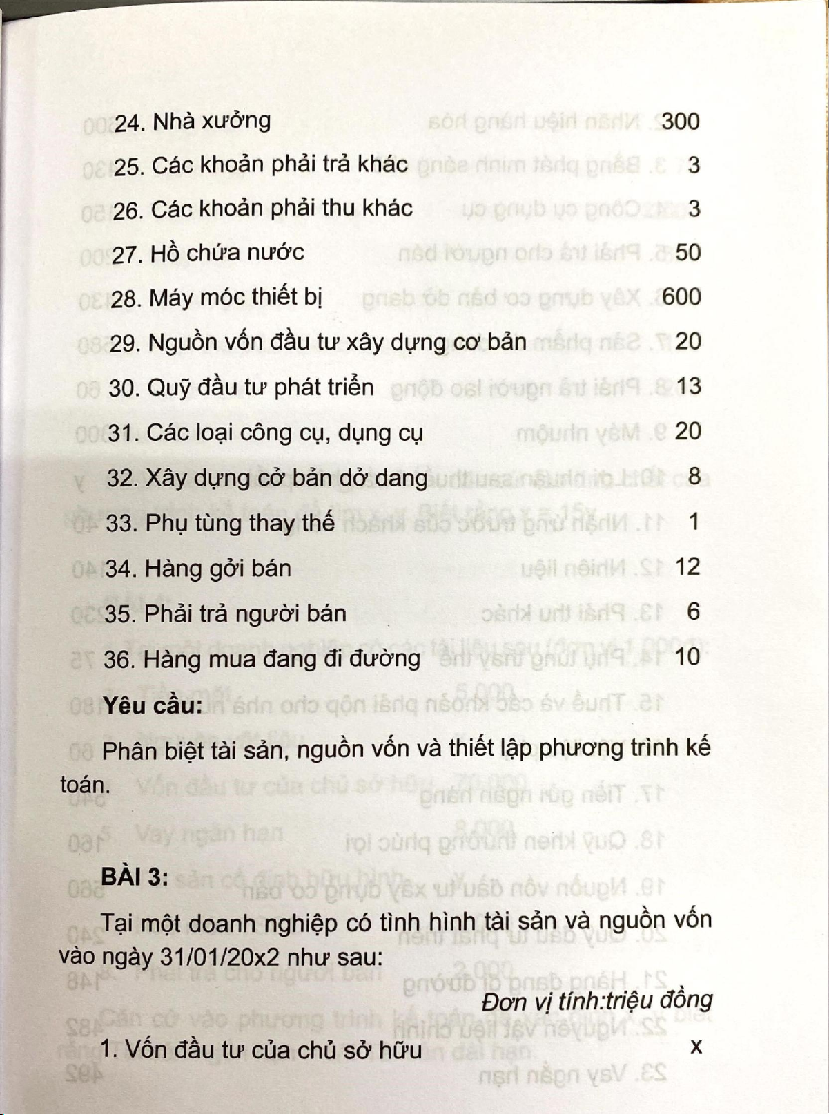 . Căc loąi công cu, dung cv . 32 8 Xây dvng Cô bân dô dang 1 33 . Phi:] tung thay th6 34 12 . Hâng gói bân 35 6 . Phâi trâ ngu'ôi băn 36 10 . Hâng mua dang di du'ông Yëu cau: