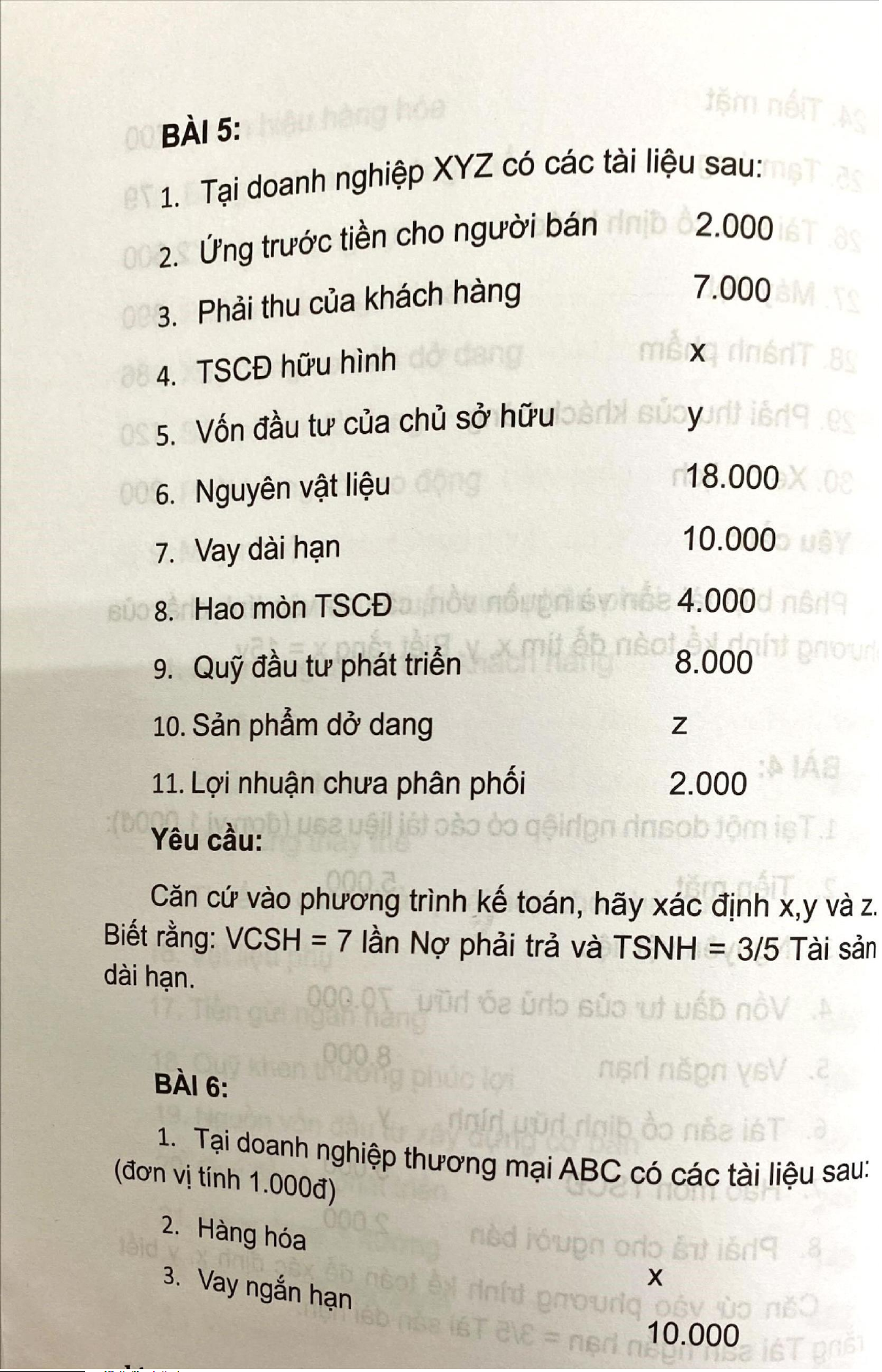 Phân biet tâi sân vâ nguôn vÓn, căn có' vâo tinh chât coa phu'0'ng trînh k' toân tim x, y. Bi6t râng x = 15 y BÂI 4: