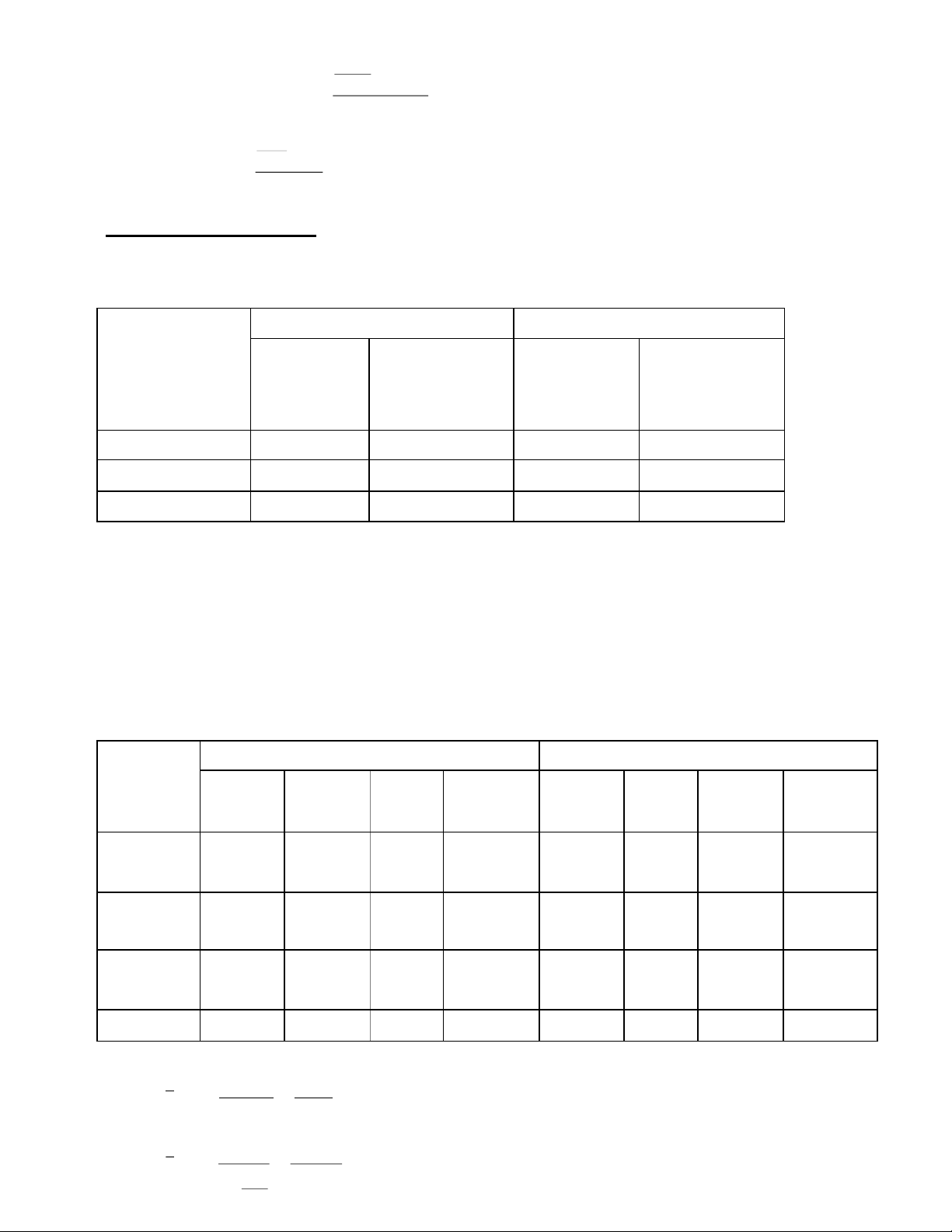 Phn II: Đp n bi tp Năm 2007 Năm 2008 SP Tỷ lệ Tỷ trọng Tỷ lệ Tỷ trọng DTKH DTTH DTTH DTKH HTKH DTTH HTKH DTTH Bánh quy 1200 110 1320 20,24 1400 112 1250 20,53 Kẹo mềm 3400 105 3570 54,74 3620 110 3290,91 53,08 Thạch dừa 1600 102 1632 25,02 1800 105 1714,29 26,39 Cộng 6200 6522 6820 6255,2 x f 1. i i 6522 x ,1052 1 ( 0 ,5 % 2 ) 2007 fi 6200 Mi 6820 x ,109031 ( 0 ,90 % 3 ) 2008 Mi 625 ,52 i x 6522 6820 13342 x2 nam 0 ,1 7121 ( 071, % 2 ) 6200 625 ,52 1245 ,52 2. ybp d ytt