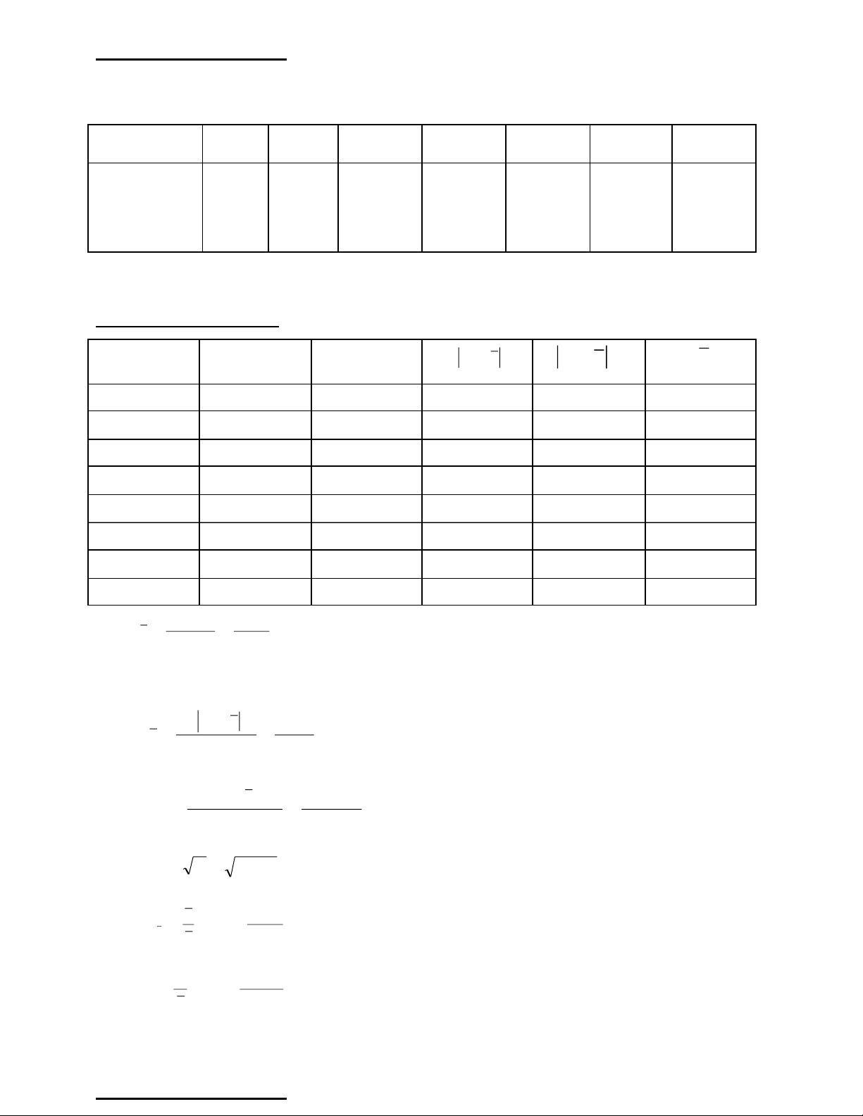 Phn II: Đp n bi tp xi fi xifi xi x x x f i i x 2 X f i i i 1 30 30 3,16 94,8 299,568 2 45 90 2,16 97,2 209,952 3 60 180 1,16 69,6 80,736 4 200 800 0,16 32 5,12 5 150 750 0,84 126 155,84 6 50 300 1,84 92 169,28 7 20 140 2,84 56,8 161,312 Cộng 555 2290 568,4 1031,808 x f x 2290 i, 4 i16 bac fi 555