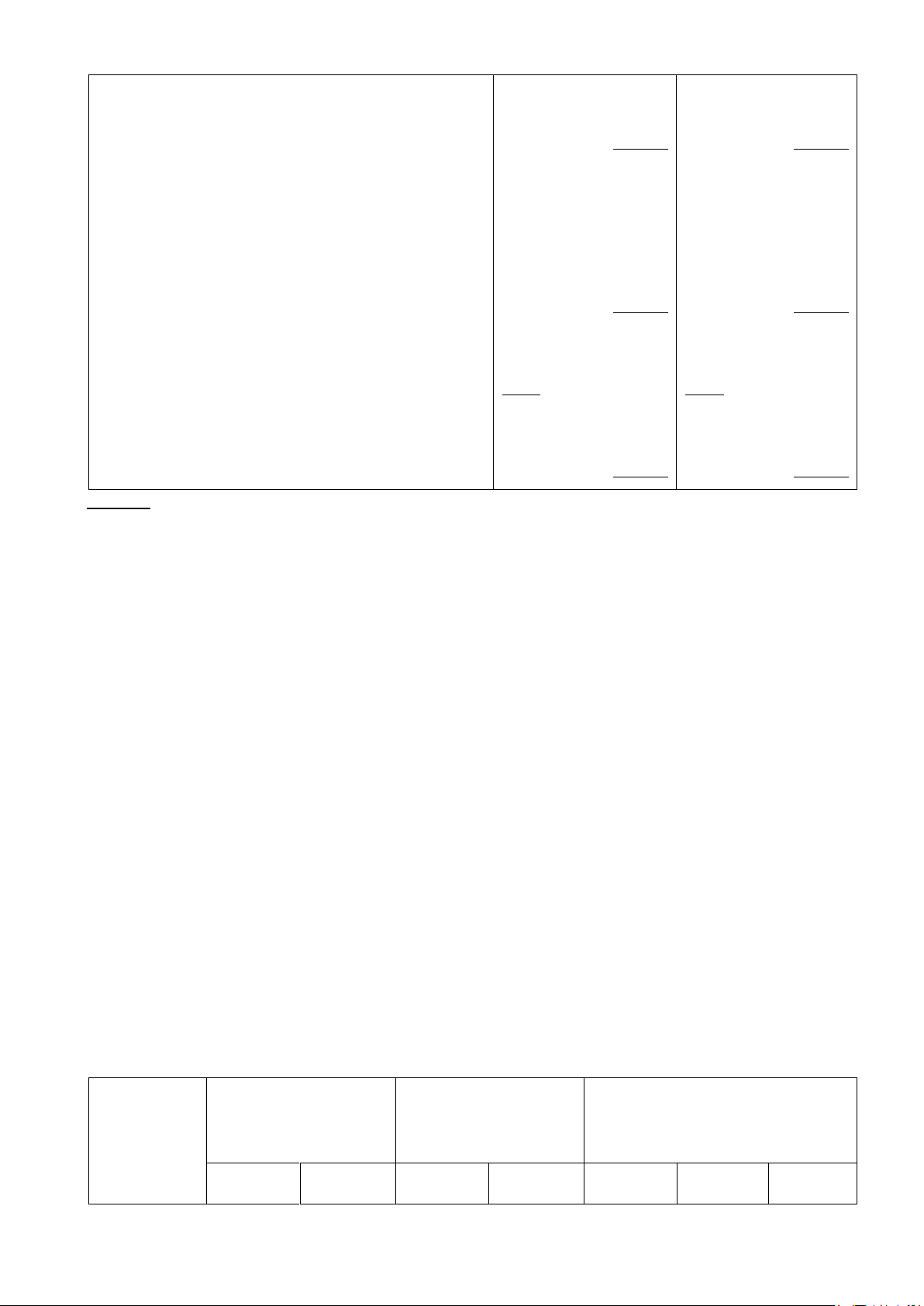 Bài 3: Tại công ty Quốc An có Bảng cân đối kế toán và Báo cáo kết quả hoạt động kinh doanh như sau: (triệu đồng)