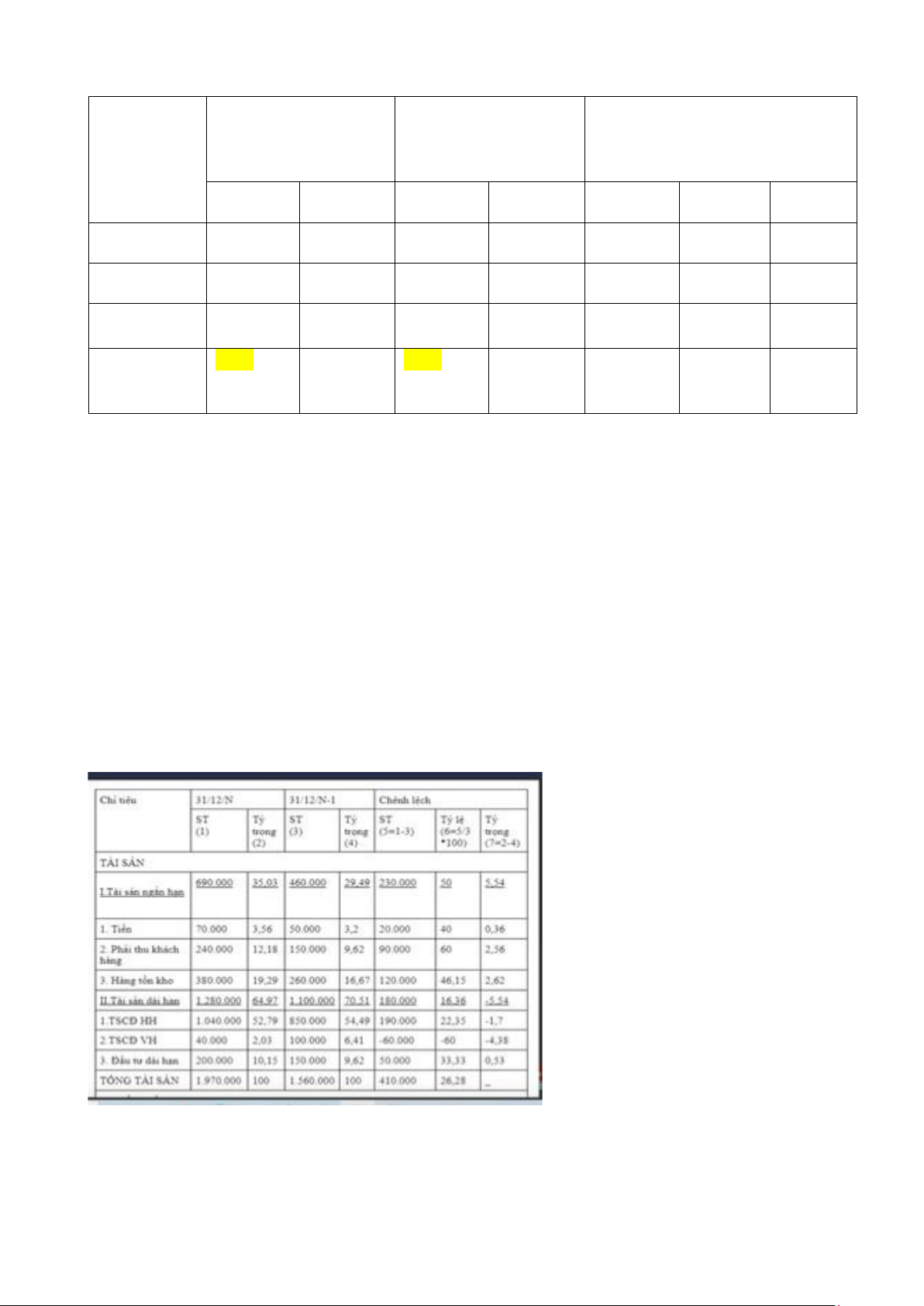 (so với năm trước, so với thời gian trong hđ kinh tế, và so sánh với ngành (nếu có) ) Nhận xét:
