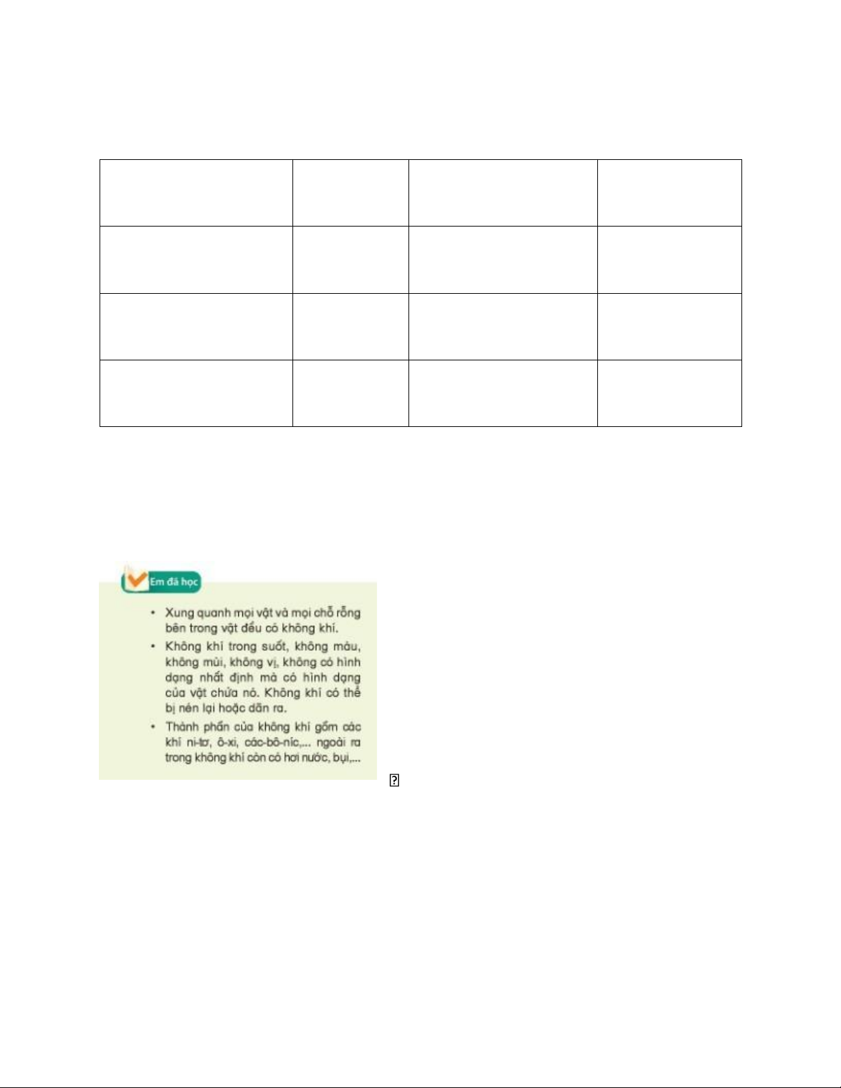 khí (Sách giáo khoa Khoa học lớp 4 – Kết nối tri thức với cuộc sống – trang 17)