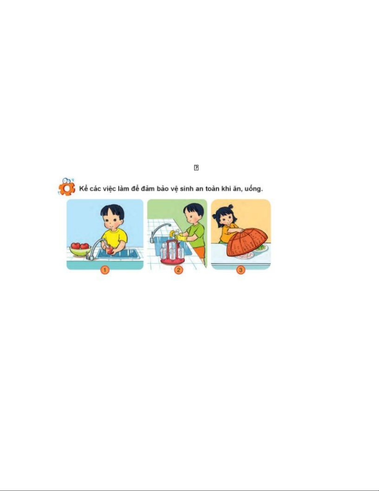 Trước khi ăn, em cần làm gì để đảm bảo vệ sinh? •