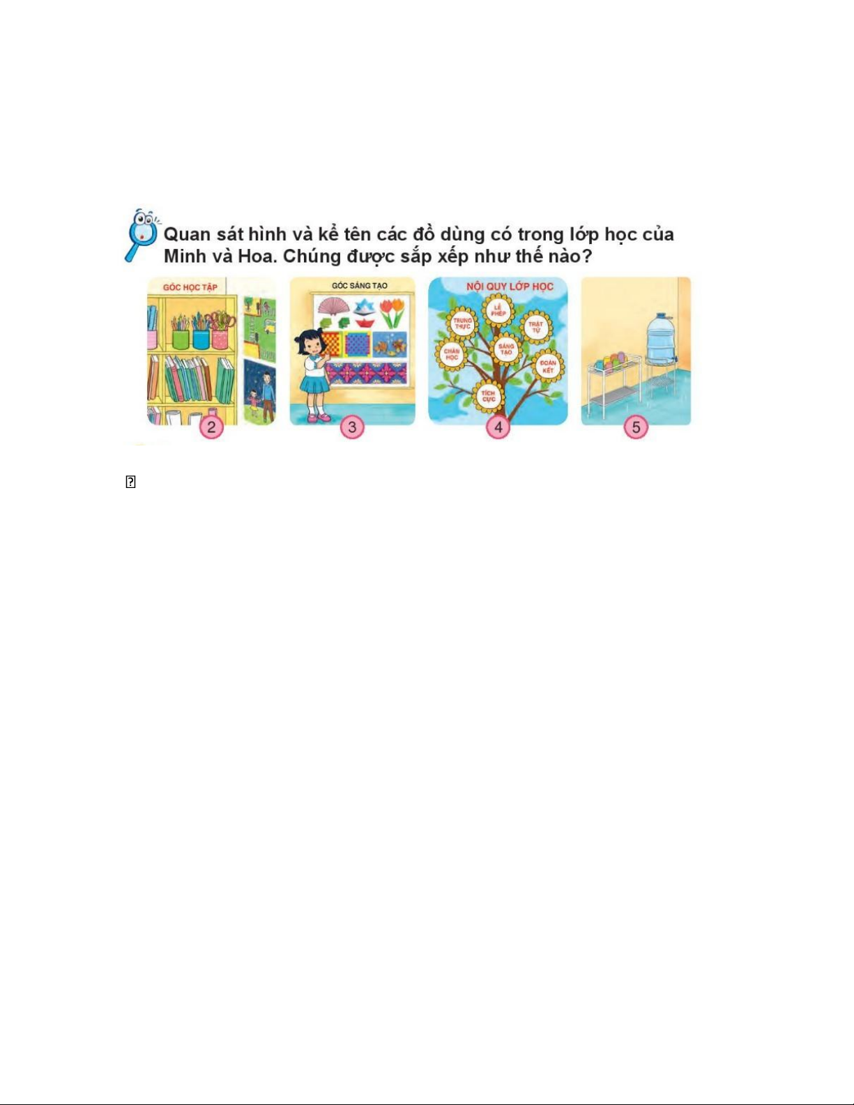 lớp học, góc sáng tạo,....