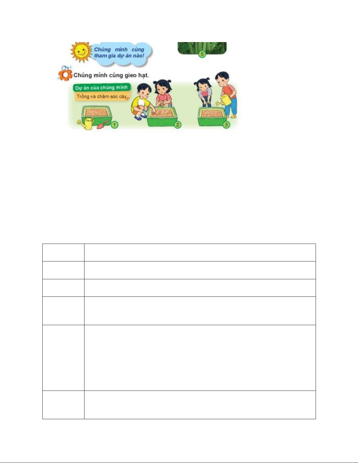 Lưu ý: Học sinh điền vào cột ‘‘Dụng cụ sử dụng’’, ‘‘Nhóm em làm thế nào?’’,