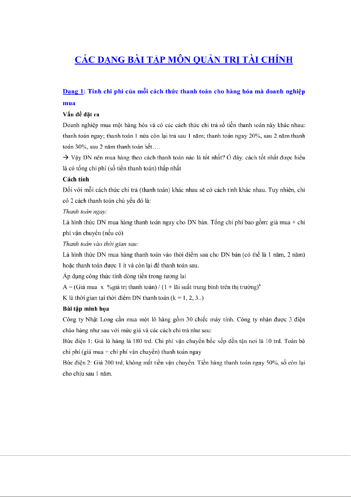 Bài tập quản trị tài chính | Đại học Thương Mại