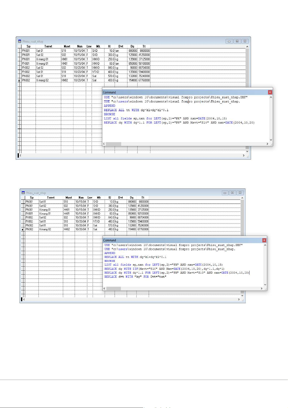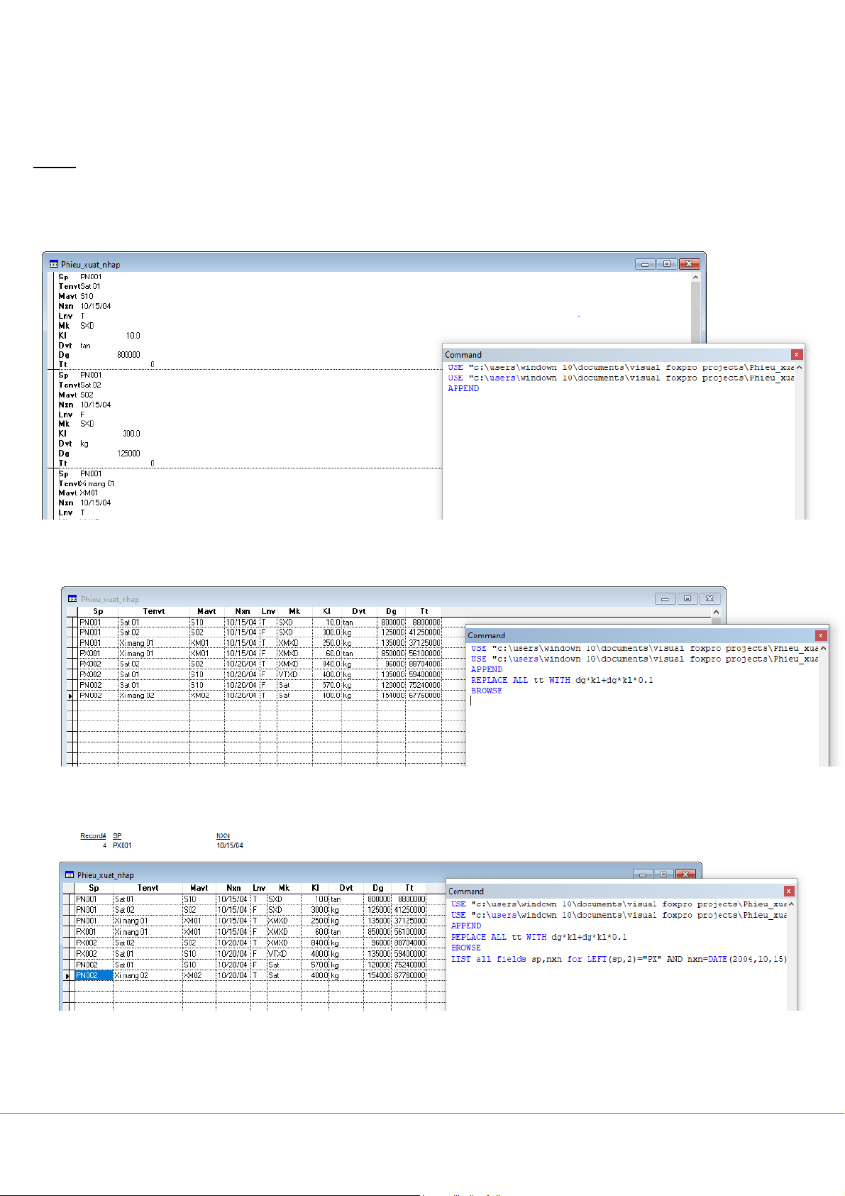 BÀI TẬP MÔN TIN ỨNG DỤNG Bài 3: 1. CREATE Phieu_xuat_nhap 2. Append