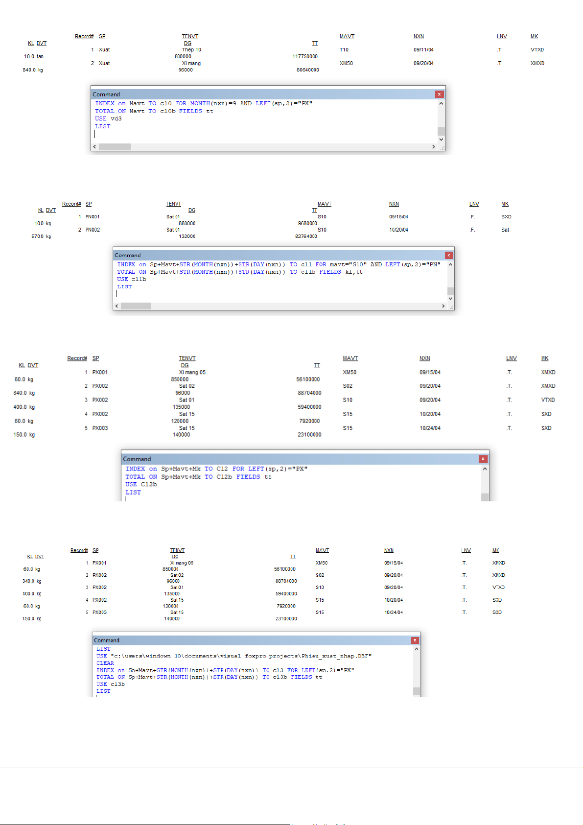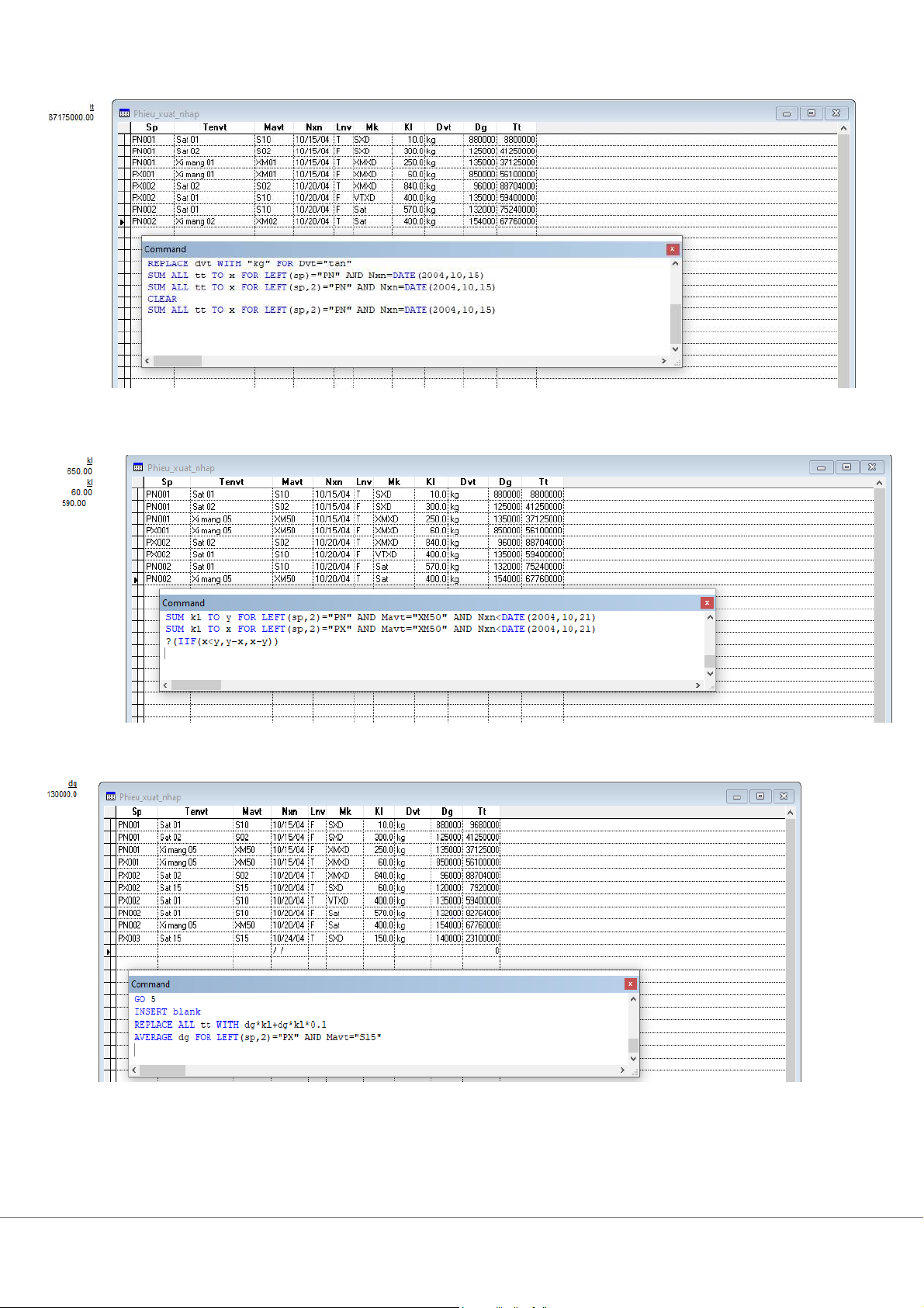 11. Tổng khối lượng, số tiền nhập vật tư mã “S10” trong từng ngày của tháng 9 năm 2004 12. T