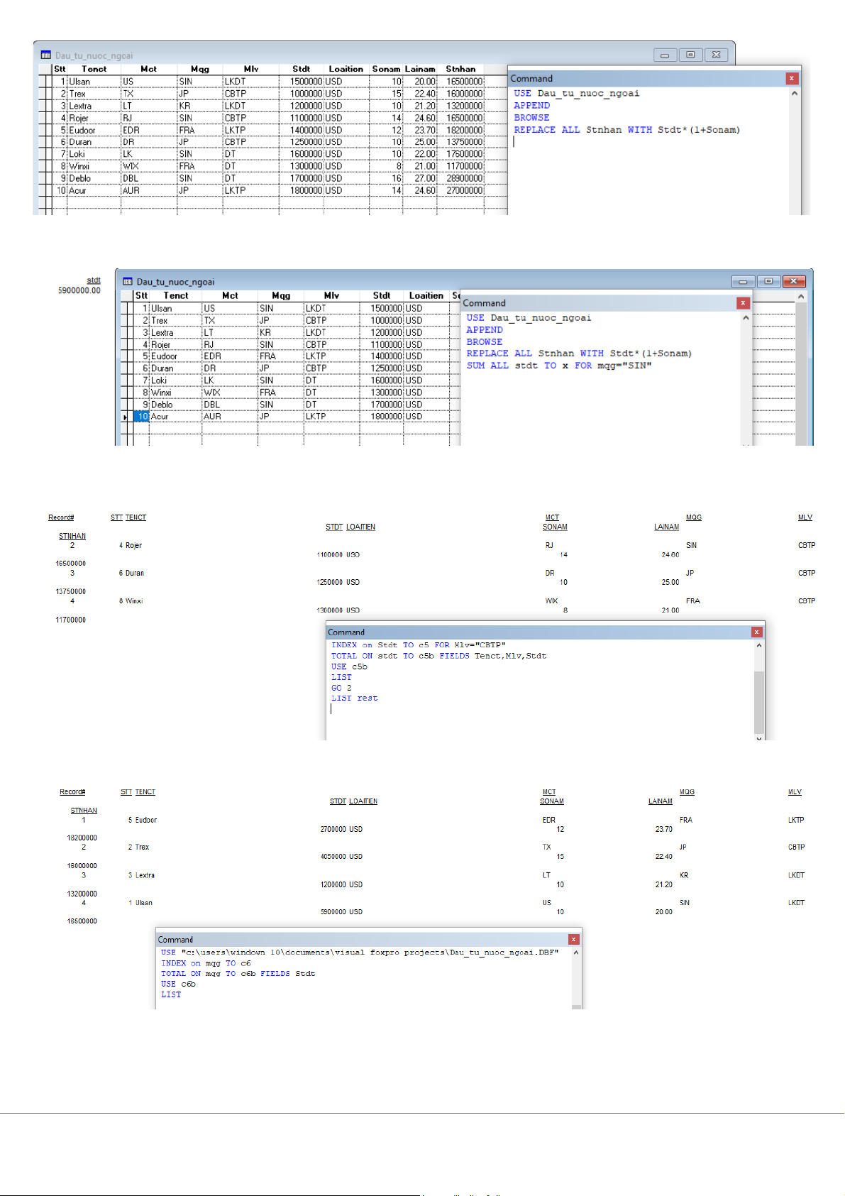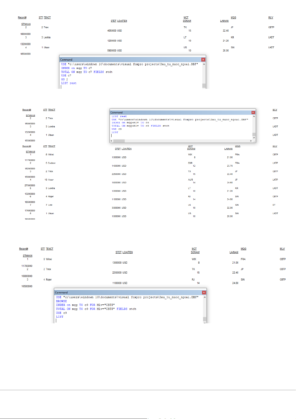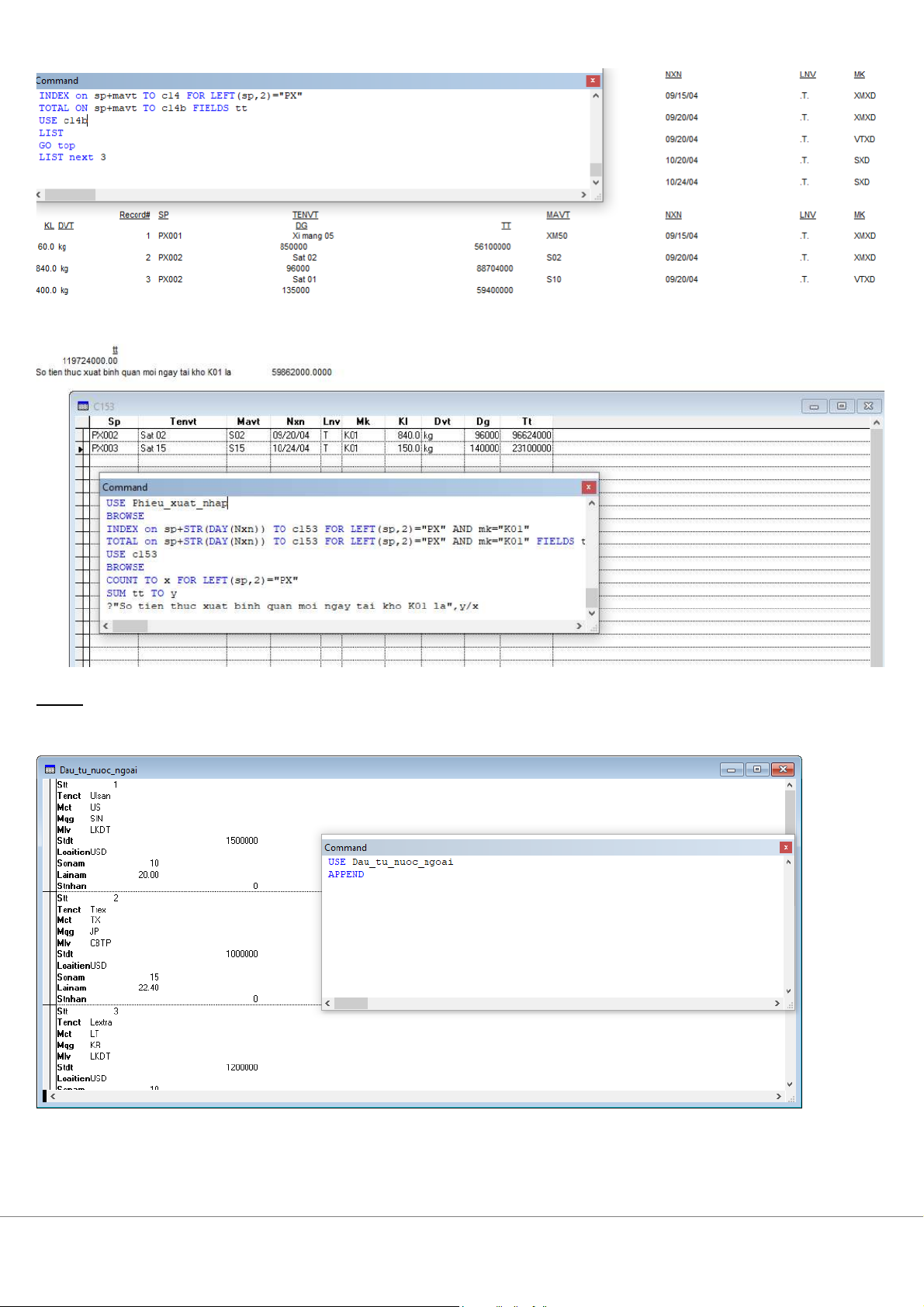 ực xuất tại kho có mã 'K01' Bài 4: 1. CREATE Dau_tu_nuoc_ngoai 2. Append