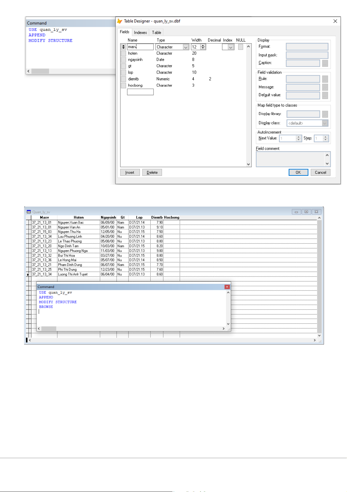 2. Nhập ít nhất 10 bản ghi cho tệp
