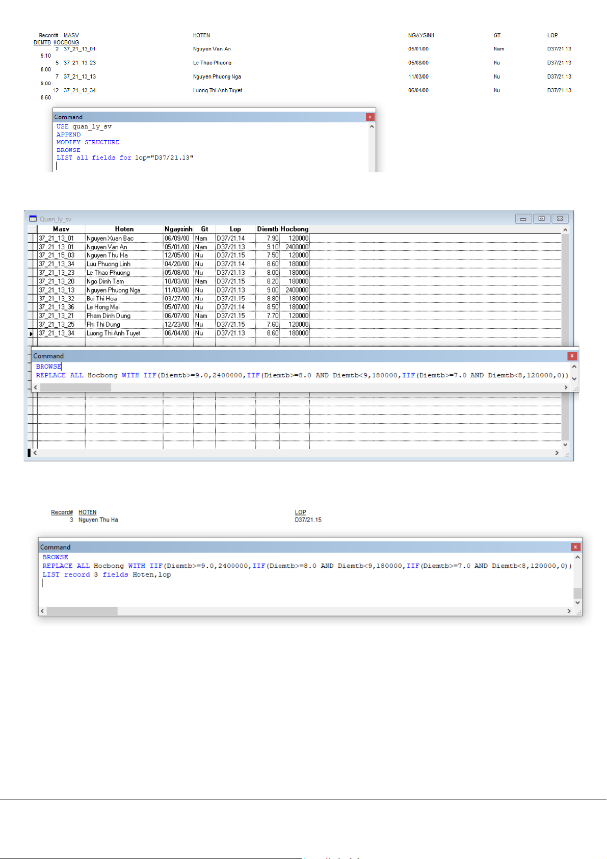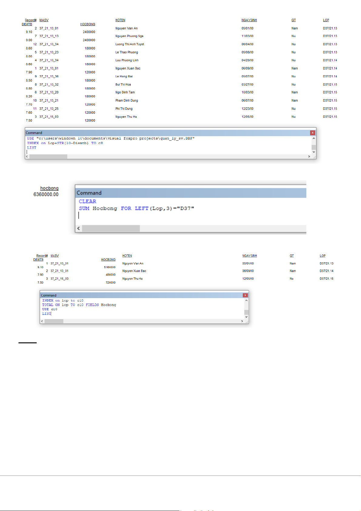 5. Hiển thị lên màn hình danh sách các sinh viên lớp D37/21.13
