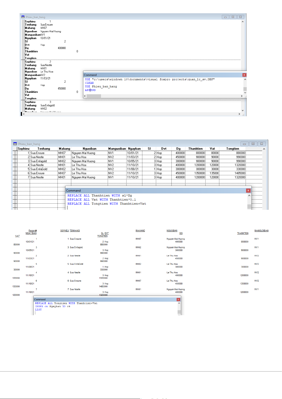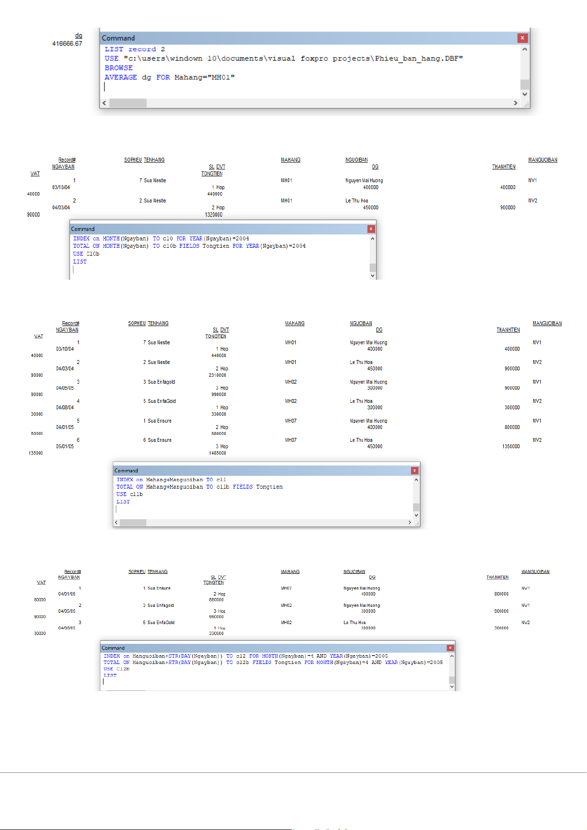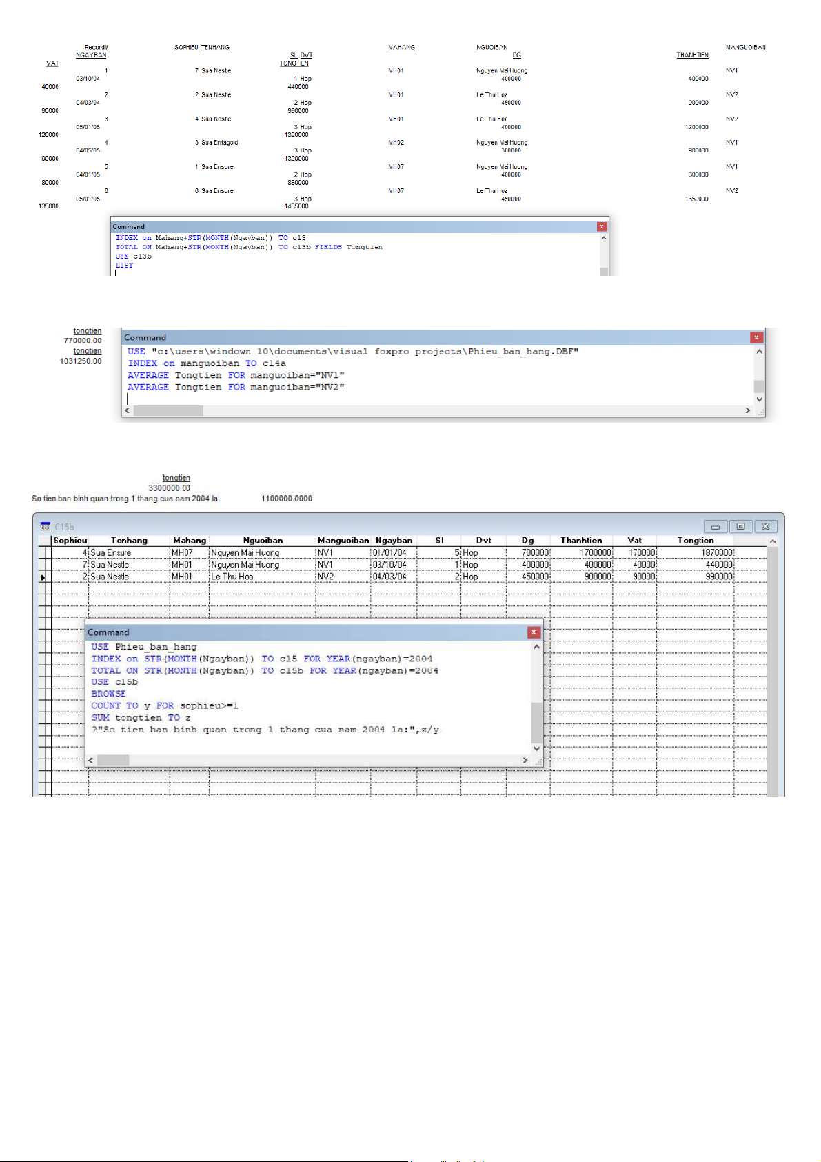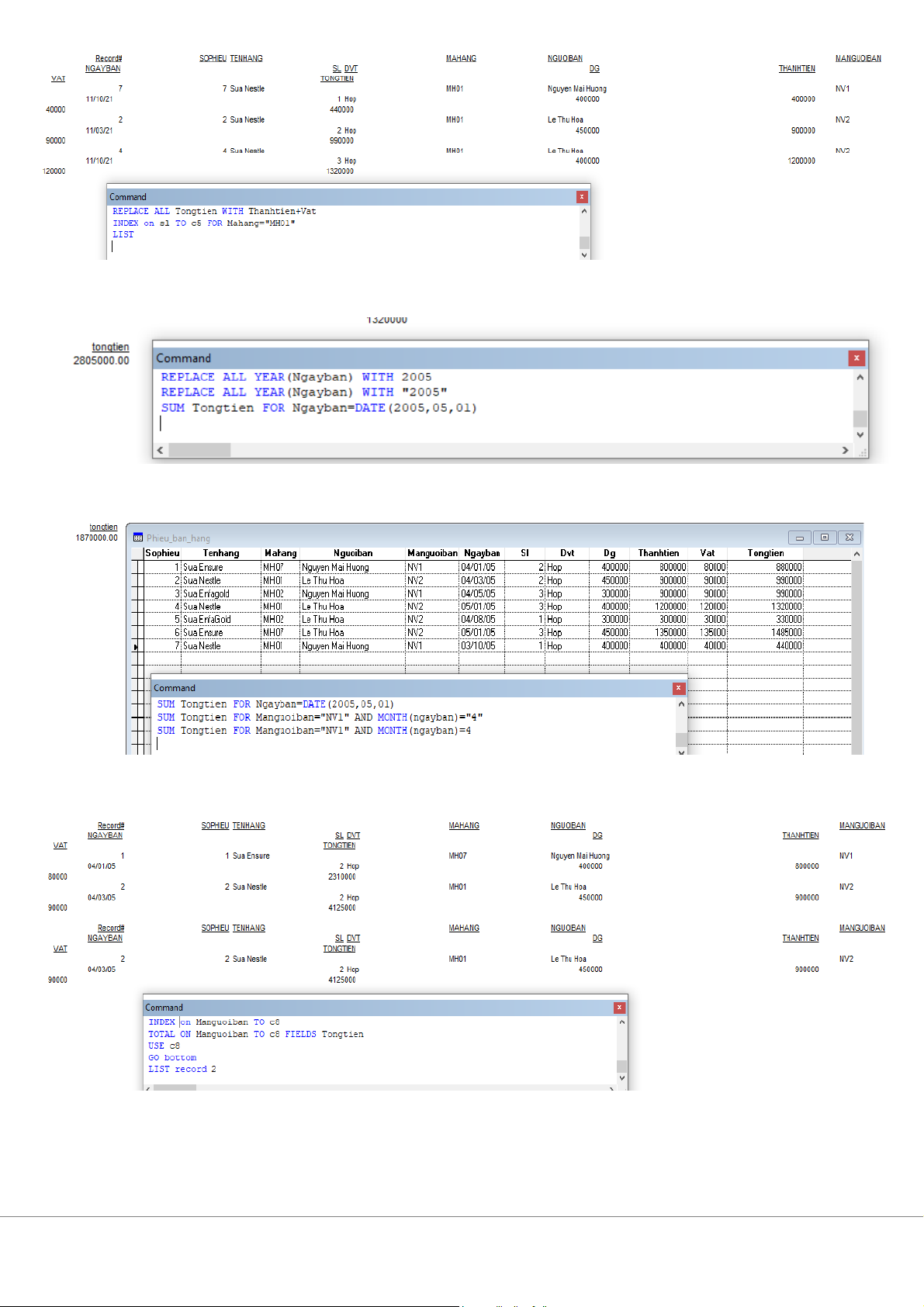 ố tiền bán từng mặt hàng của từng nhân viên 12. Tính t ng s ổ ố tiền bán c a t
