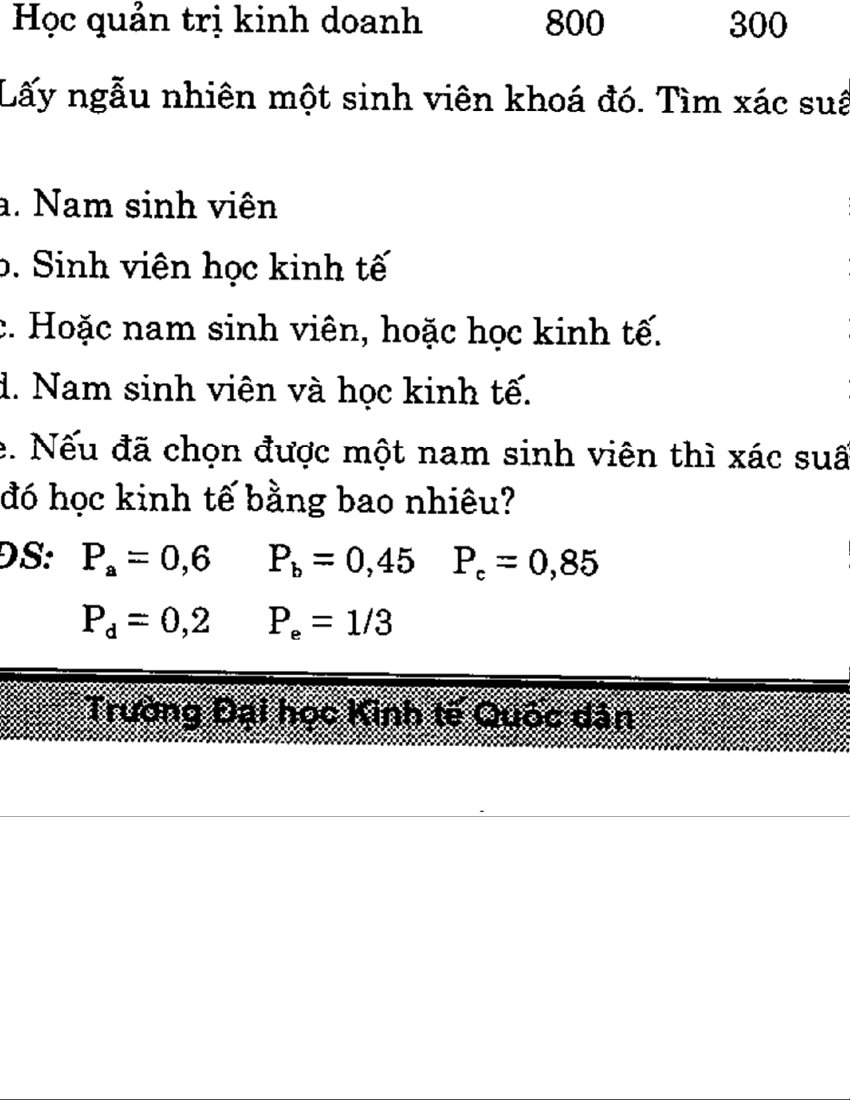 Đề thi cuối kỳ lý thuyết môn Xác suất thống kê| Trường Đại học Ngoại Thương